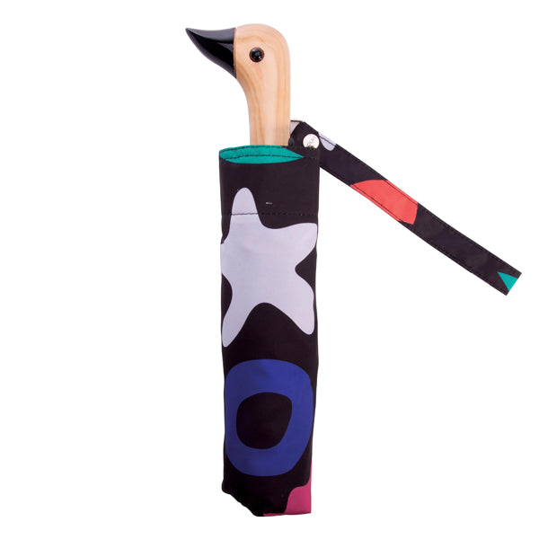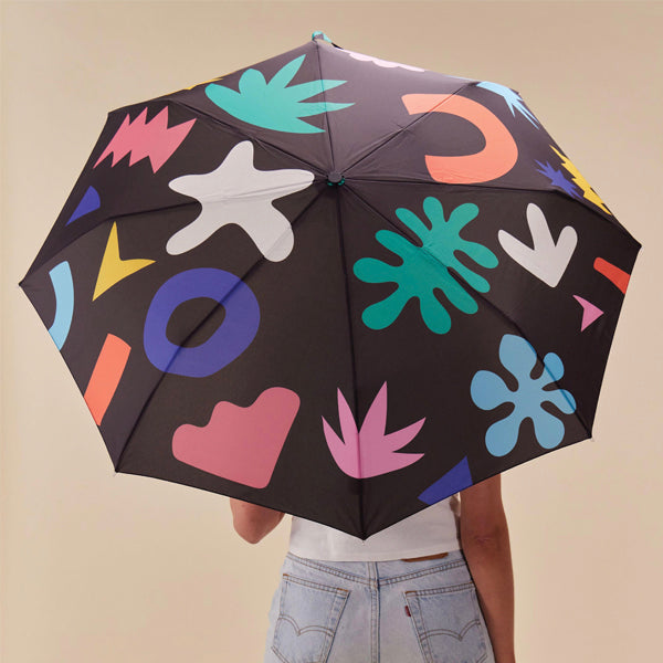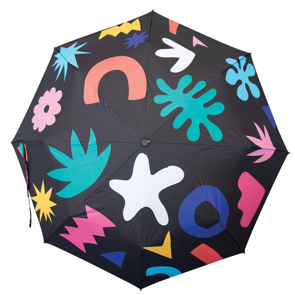 The Palma print features joyful splashes of colourful shapes against a black background. Truly a jolly brolly.