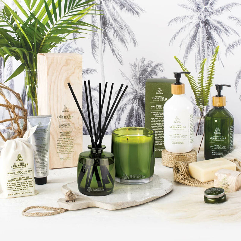 A Fragrance Diffuser featuring an uplifting blend of lemongrass, lemon myrtle, grapefruit and eucalyptus essential oils.