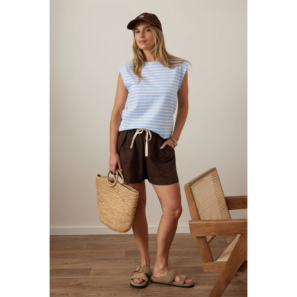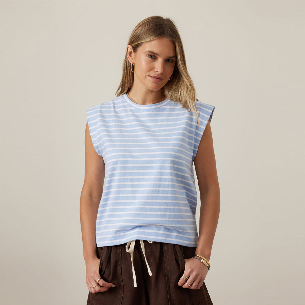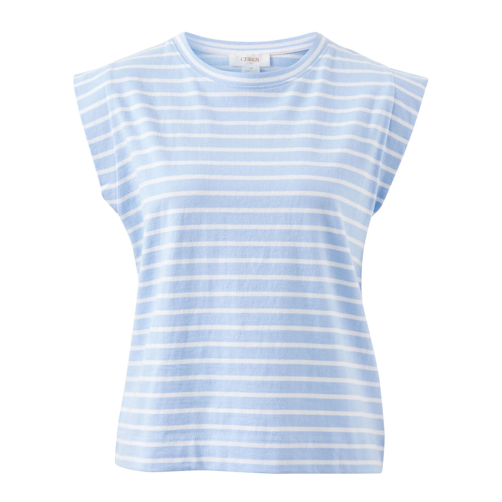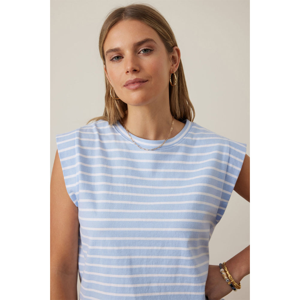 Esme Extended Shoulder Tee - China Blue + White Stripe