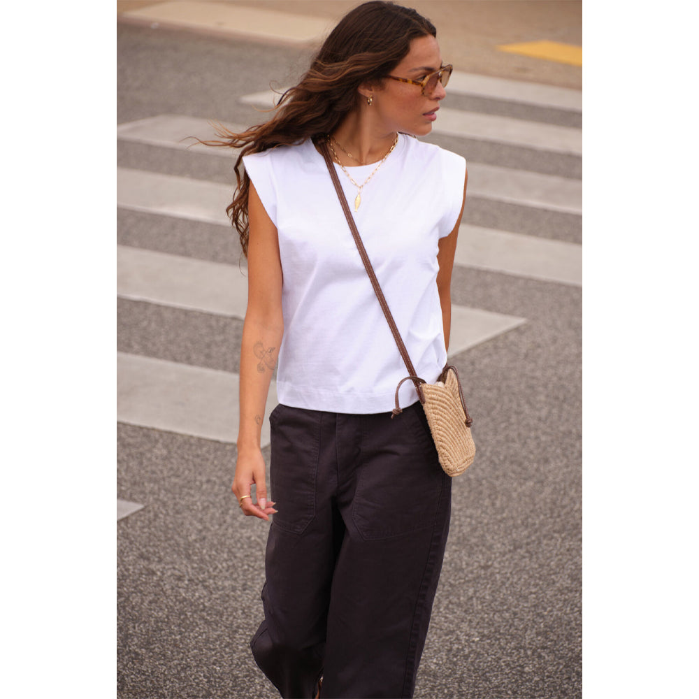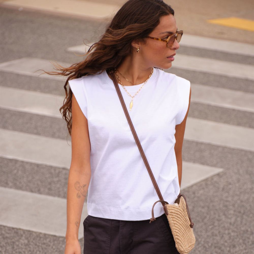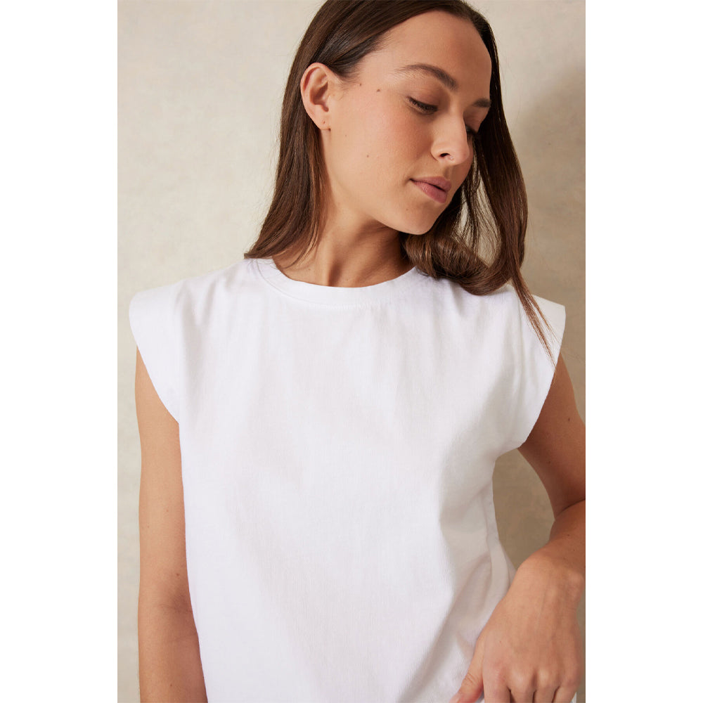 Say hello to your new go-to with the Esme Extended Shoulder Tee (Ceres Life). Made with 100% Australian Cotton, it's the ultimate classic. The regular fit, small cap sleeve and soft hand feel give it the perfect balance of chic and comfort. Whether it's for lounging or layering, this tee is ideal for any occasion. Get ready to look effortlessly chic with this wardrobe essential.