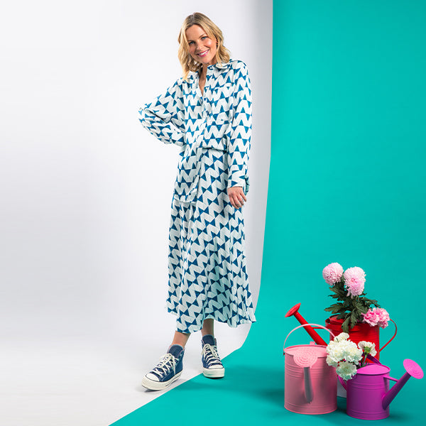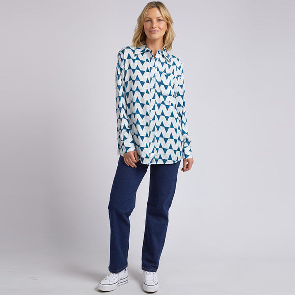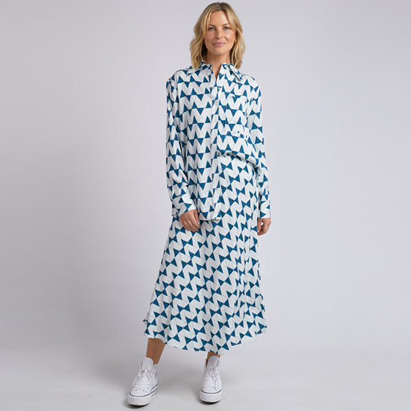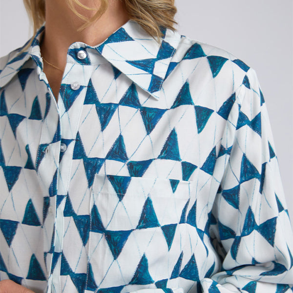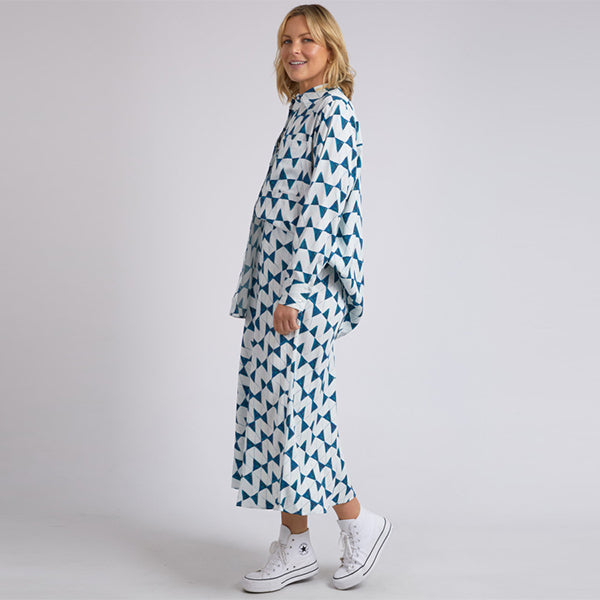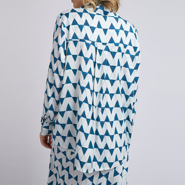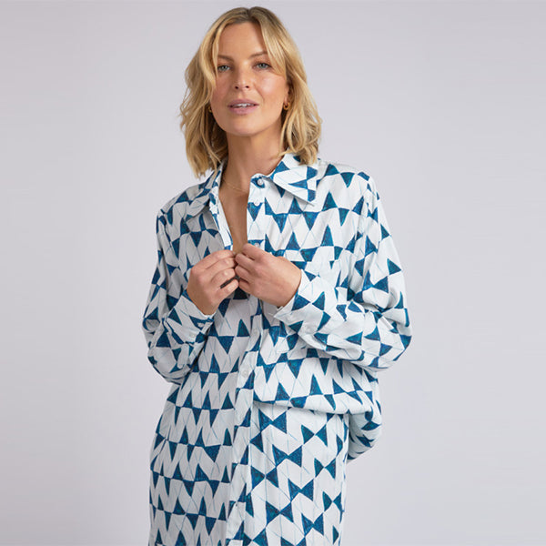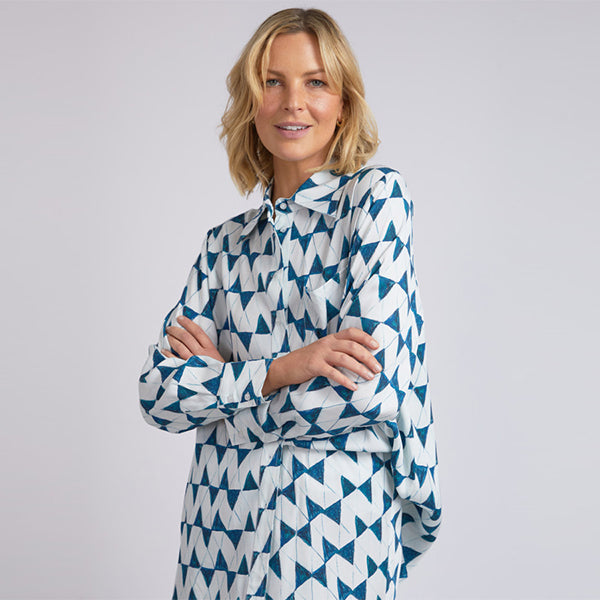 From the gorgeous artist collaboration with Elm Lifestyle. This lovely geometric print is from the Janey Forbes artwork private universe and exemplifies the simplicity and fun of her stunning artworks. Made from smooth and drapey viscose twill this shirt is a gorgeous piece. Match back with the Janey Geo Skirt for the ultimate put together look.