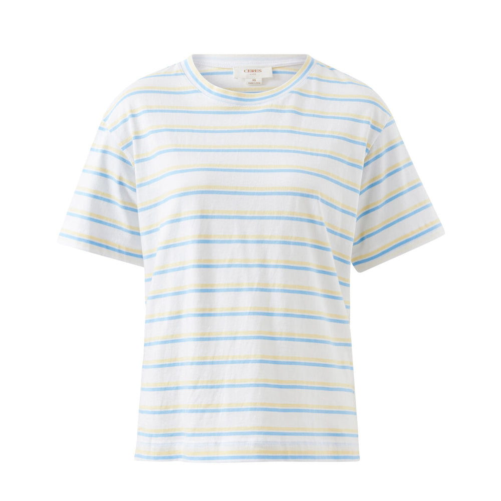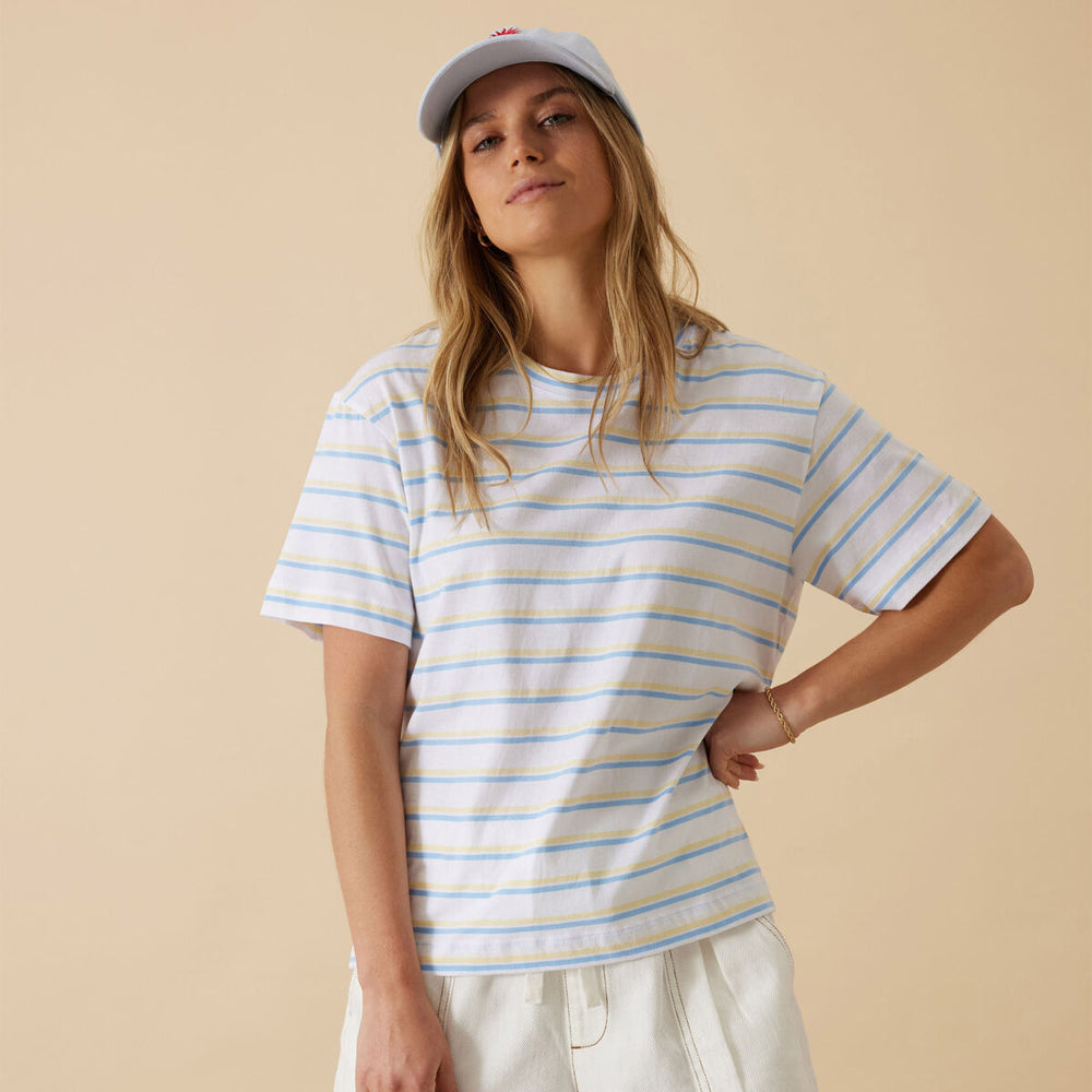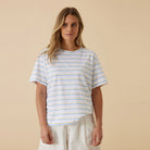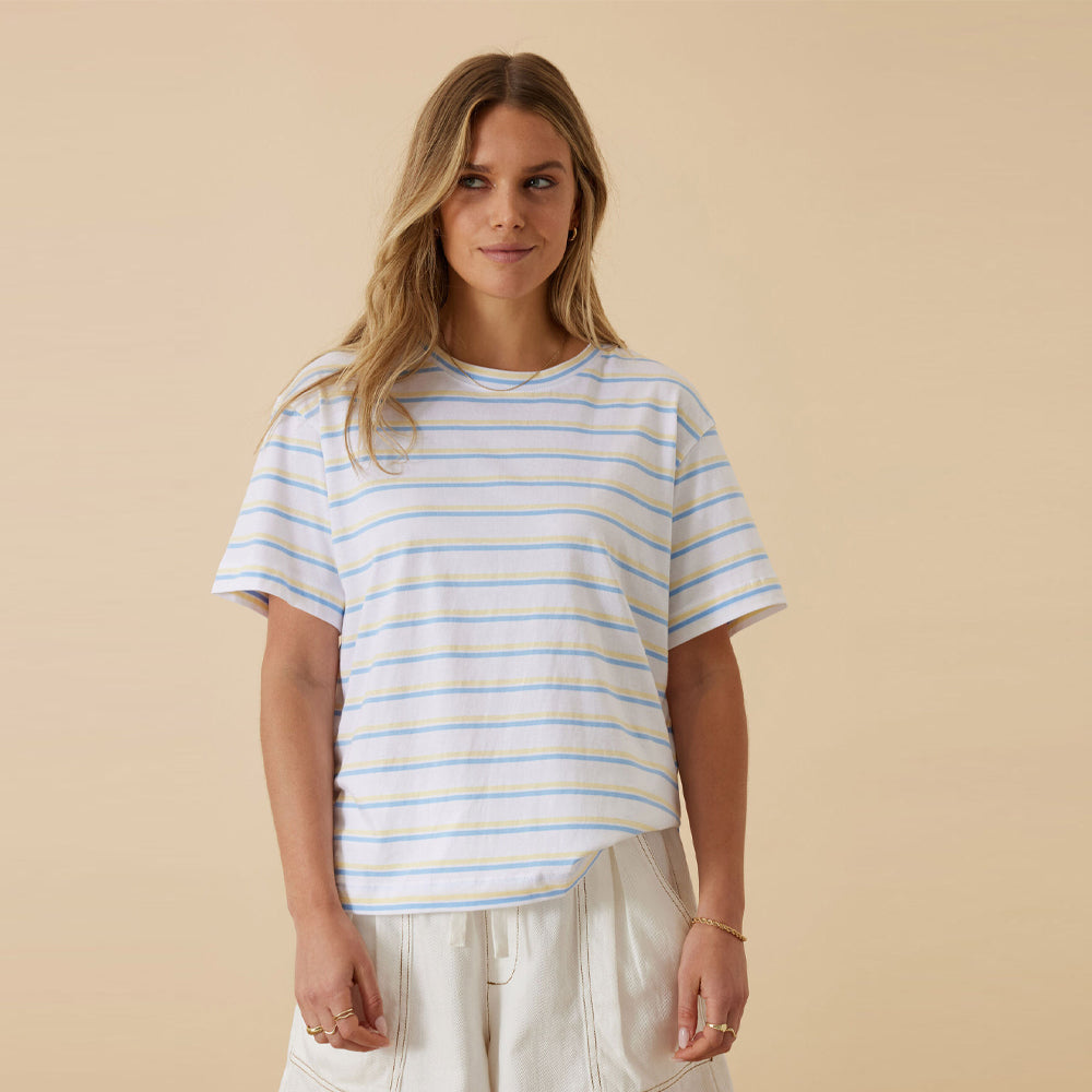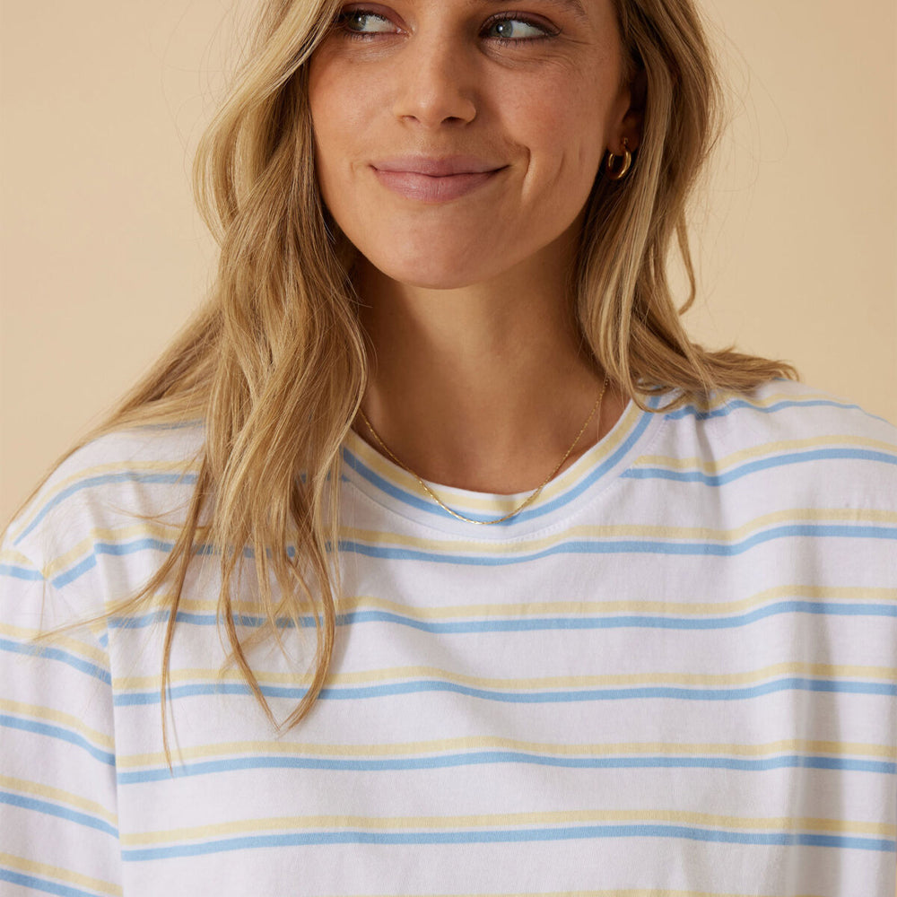 Stevie Slouchy Tee - Powder Blue + Sunny Yellow Stripe