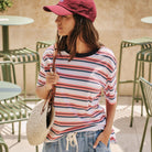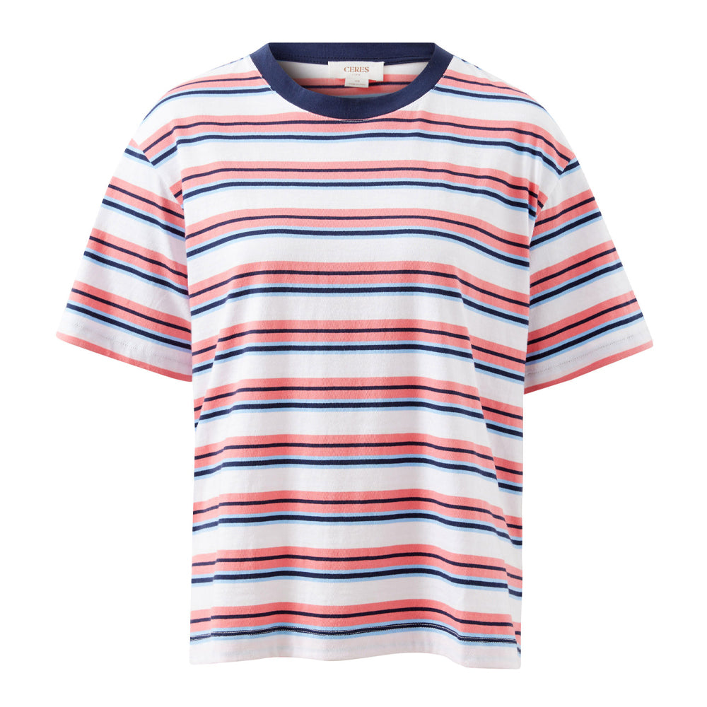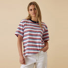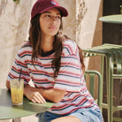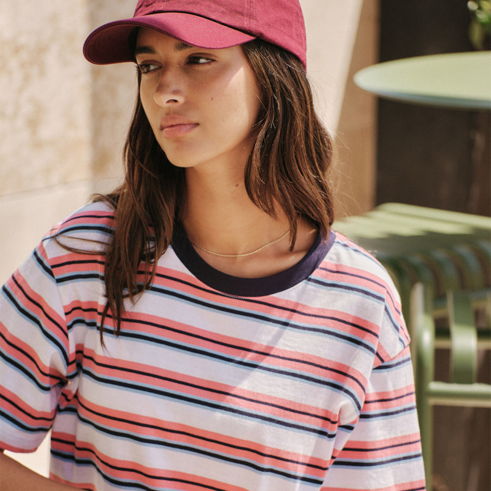 Stevie Slouchy Tee - Washed Coral + New Navy Stripe