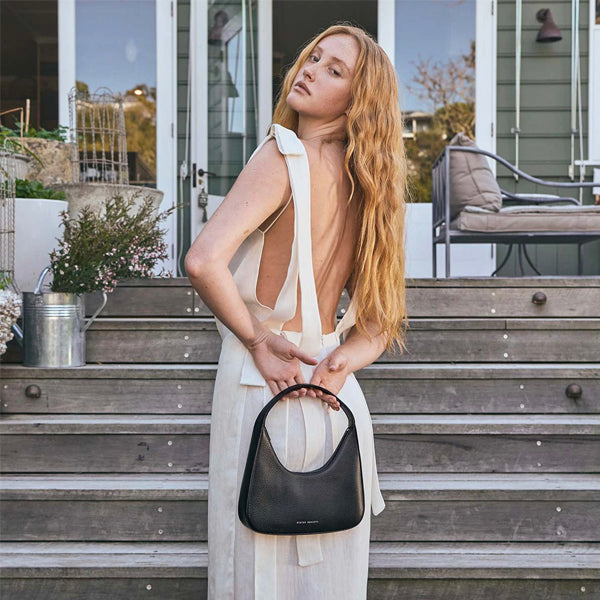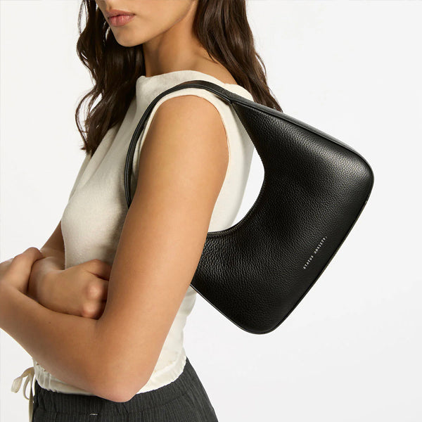 A mystical and romantic encounter. Aurora, with her dressier, more structured form, fits perfectly under your shoulder, making her the perfect wingwoman for chance meetings of the night.