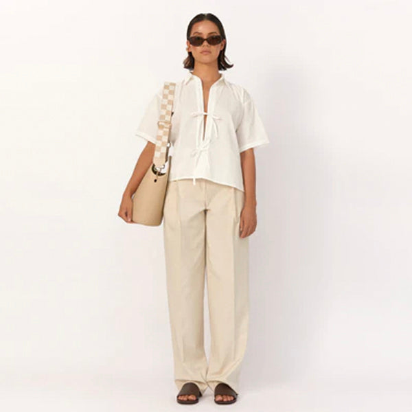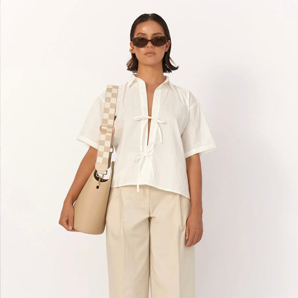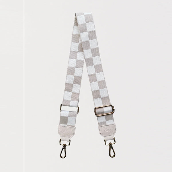 Paired with the beautifully neutral Bone Bag is the Creme Check shoulder strap, crafted from custom webbing finished with gold hardware.