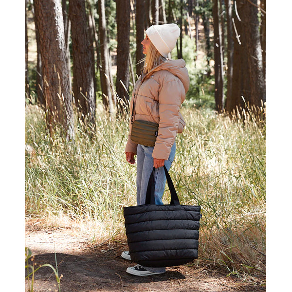 The chunky zip closure keeps everything contained while soft cotton shoulder straps deliver carrying comfort. Ultra-lightweight, cloud-like padding adds fun to the functionality of this everyday tote bag.