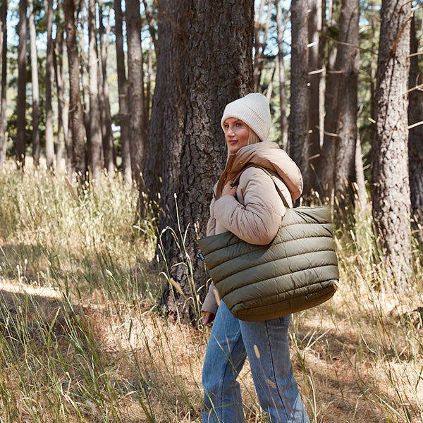 Stuff, zip and go. A soft-as-a-cloud shoulder bag for days on the go or weekends away.