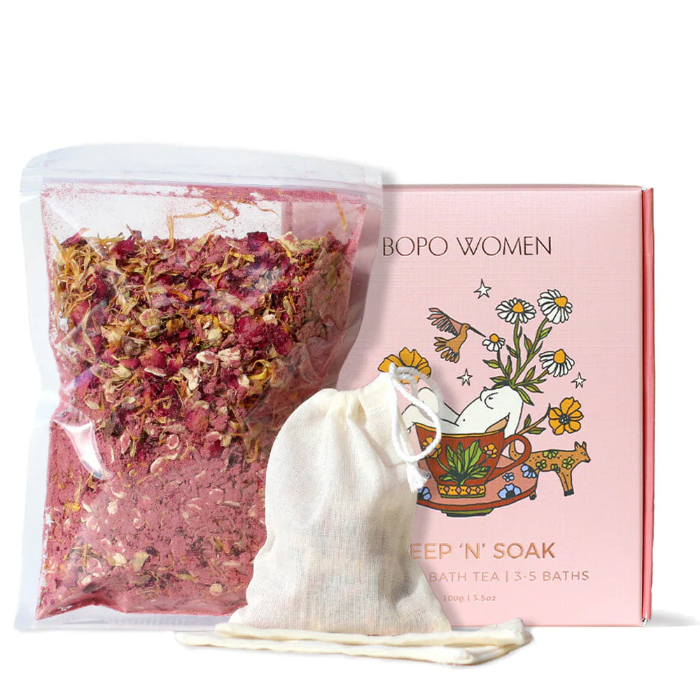 Indulge in the ultimate self-care ritual with our Steep 'N' Soak Blushing Bath Tea. Designed to transform your bath into a luxurious botanical retreat, this blend of soothing dried flowers, hydrating rolled oats, creamy coconut milk powder, and skin-loving beetroot and hibiscus powders nourishes your skin while you unwind.