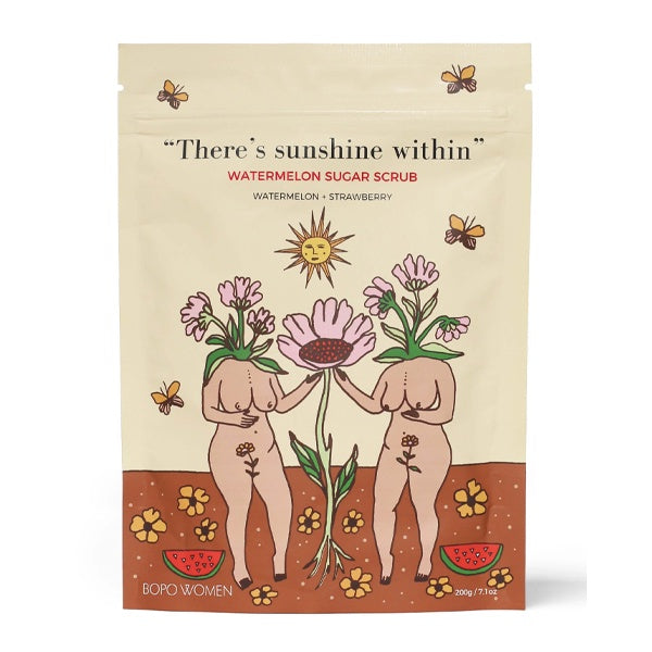The Watermelon Sugar Scrub is a refreshing nutrient rich super scrub to help you kickstart the day. Skin healing superfoods like watermelon oil, strawberry powder and azuki beans are blended with a soothing natural exfoliant base to leave your body feeling deeply moisturised and smelling like a dream, long after you use it.