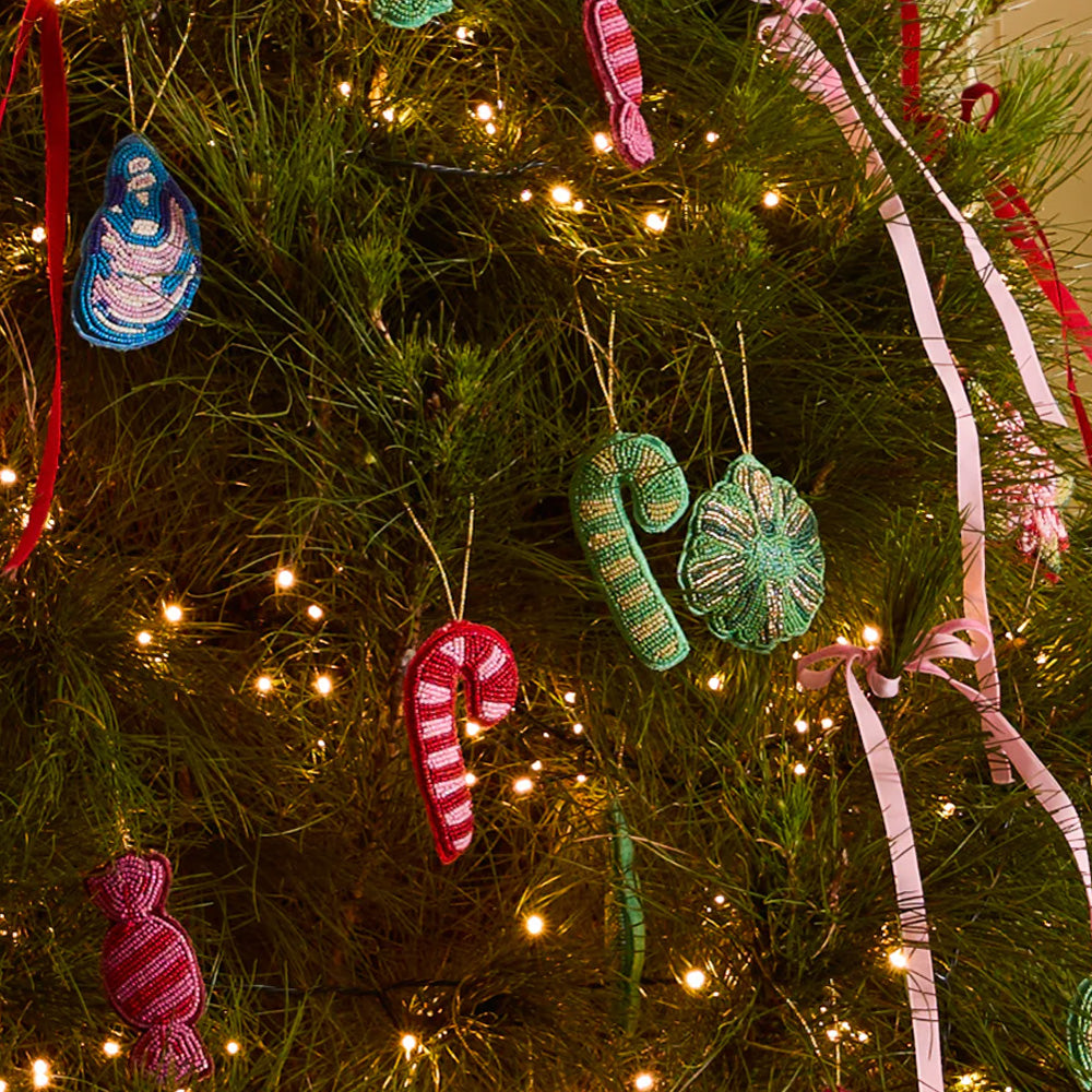 Add a touch of festive sparkle with this hand beaded ornament. Meticulously crafted with green and yellow beads, this Candy Cane adds a whimsical yet refined touch to your festive décor.
