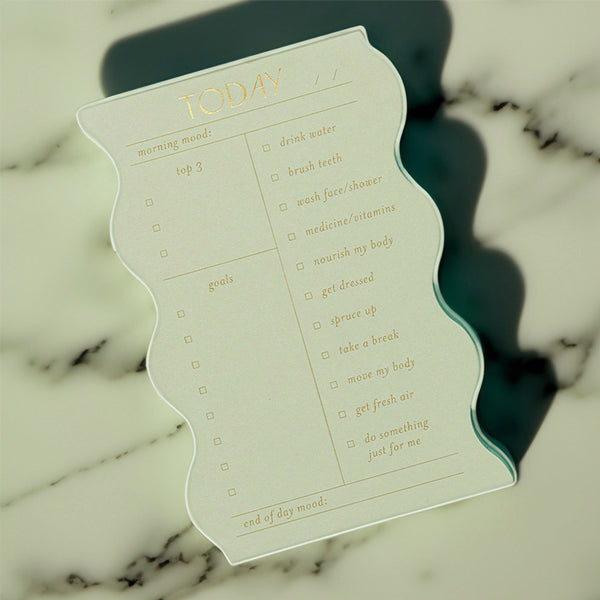 Our Wavy Daily Notepad makes your day-to-day chores more purposeful, and prompts you check in with how you're feeling. Featuring wavy detail and colourblock edges. If you love a list, this is for you.