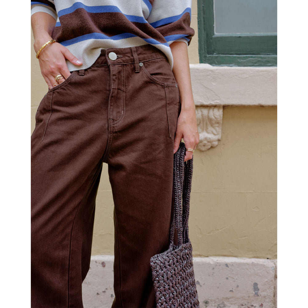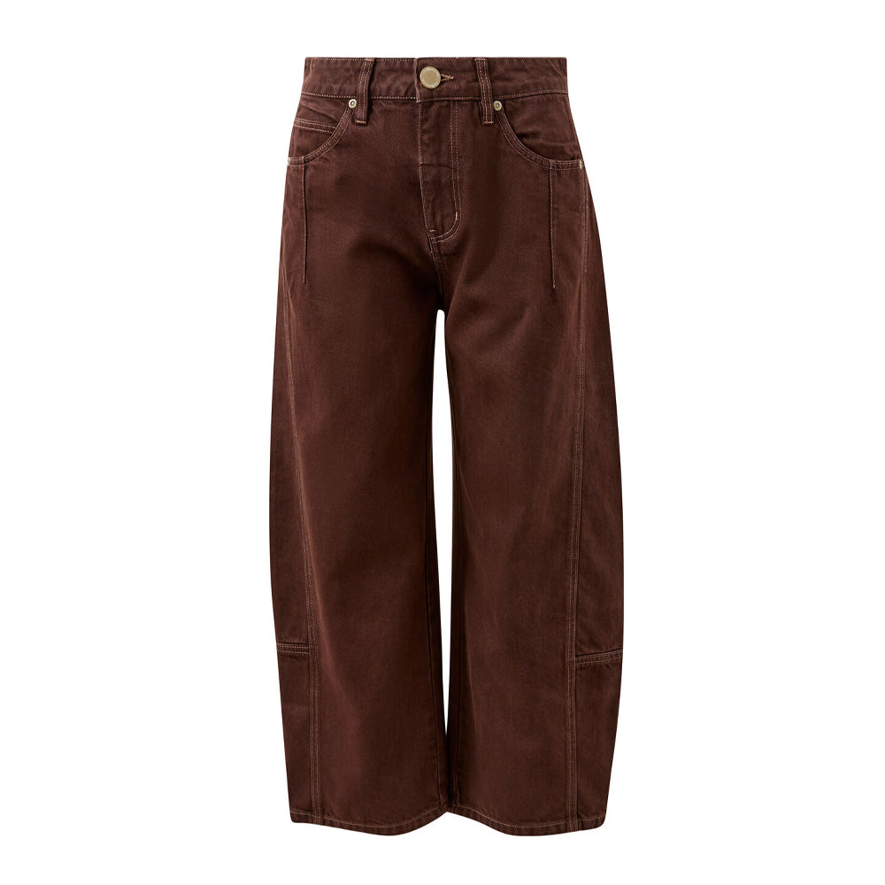 Introducing the Demi Barrel Jean (Ceres Life), made from heavy rigid twill with 34%% TENCEL™. With a mid-rise fit and a tapered barrel leg that hits just above the ankle, these jeans offer a slightly cropped, flattering silhouette. The dart detailing on the front pockets and side panel seam add a touch of subtle style. Your new go-to for effortless, everyday cool.