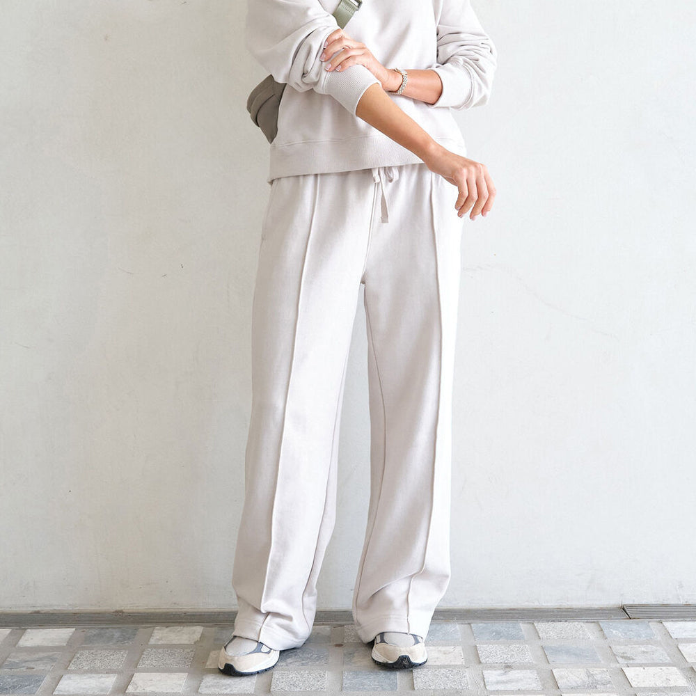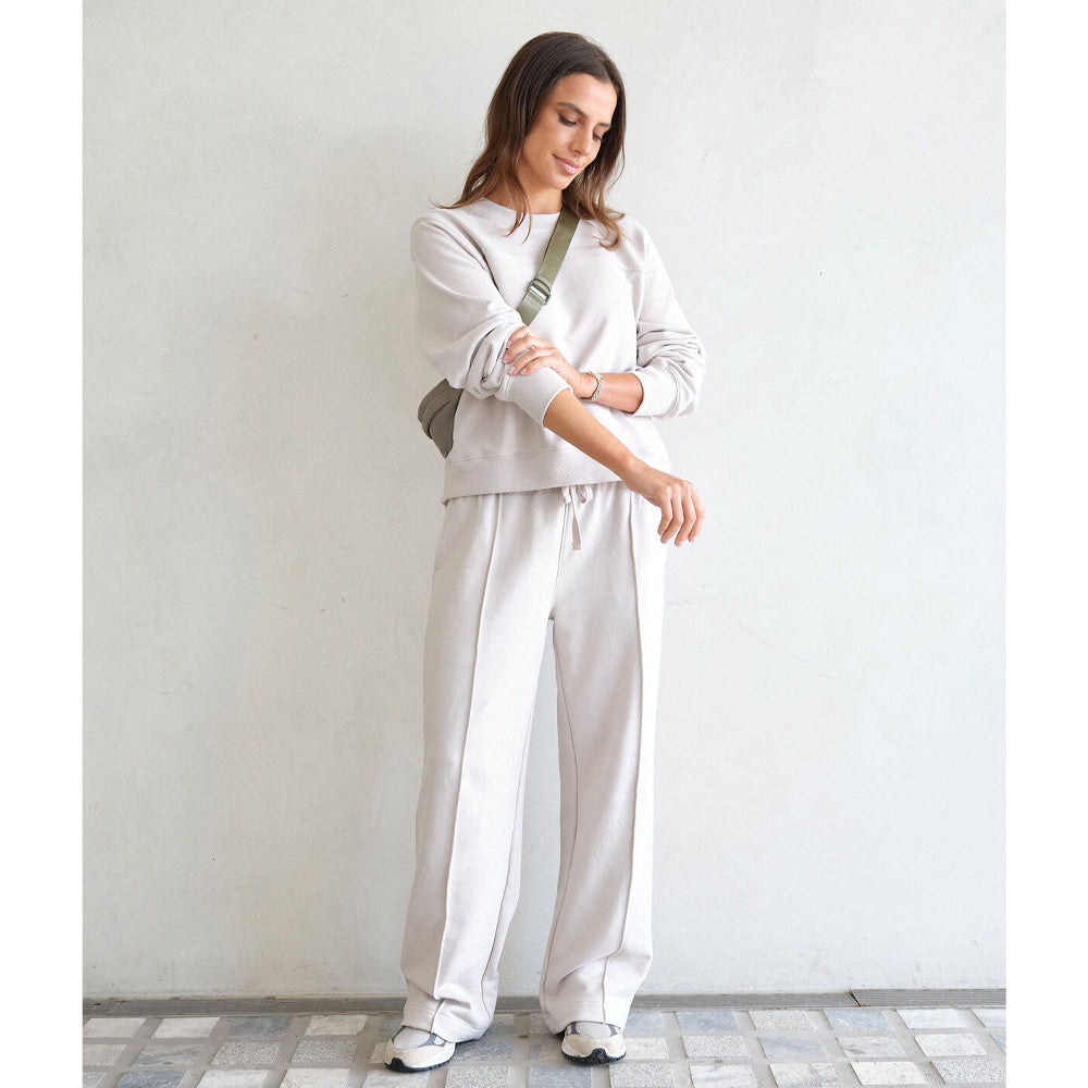 Meet Gracie, our Pintuck Trackpant (Ceres Life) for the ultimate laid-back vibe. Crafted from an organic cotton blend with loopback fabric, these pants feature a wide leg fit with seam detail on the front leg. Complete with pockets for convenience, these pants are perfect for lounging or running errands with ease.