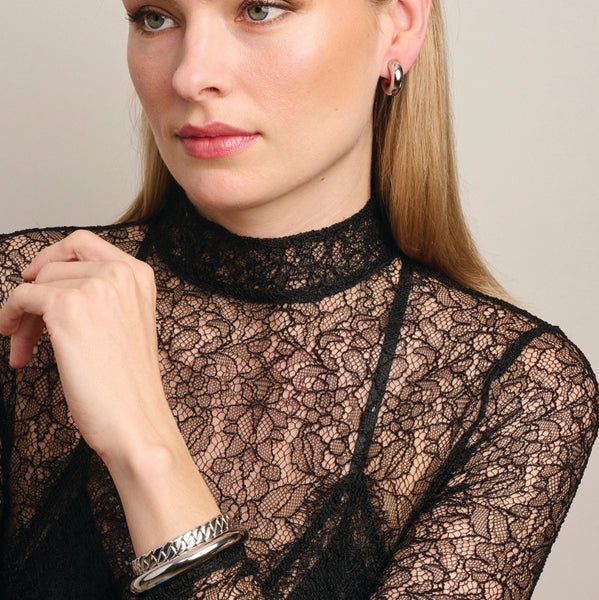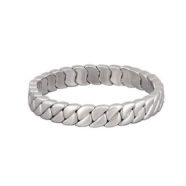 Elevate your outfit with the elasticated Silver Twist Rope Bracelet from Tiger Tree.