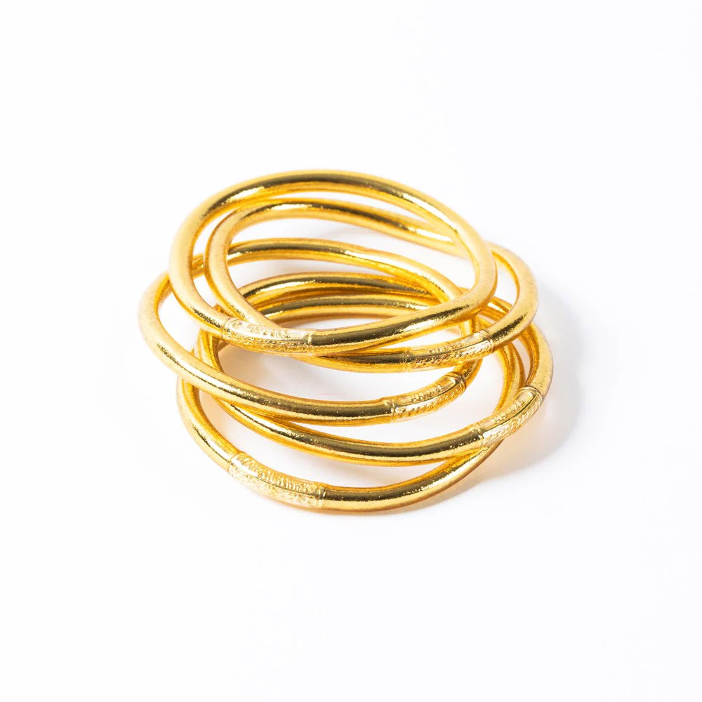 Waterproof, lightweight, comfortable and silent, these authentic Buddhist Bracelets are made from transparent flexible rods filled with gold leaf.