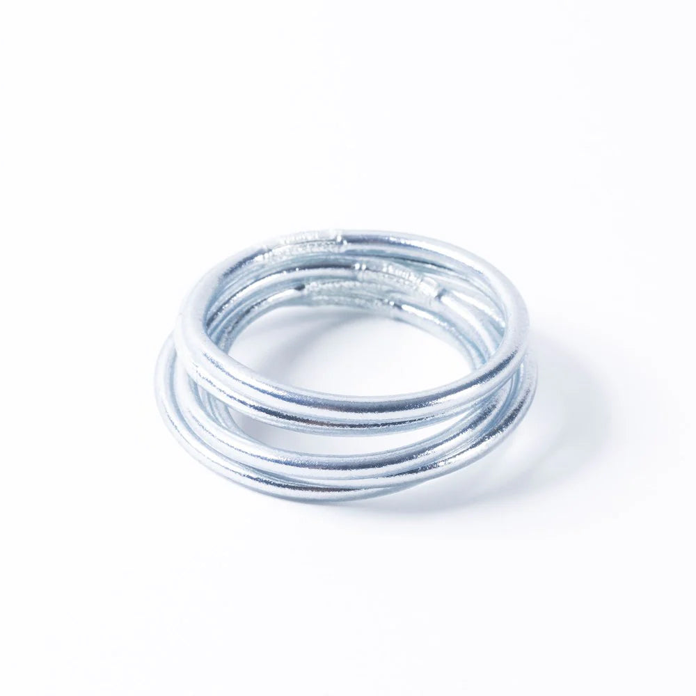 Available in Thin, Thick, Twisted or Braided, in Silver, Champagne or Gold, they look effortlessly chic and beautifully boho stacked and layered together. (Each sold separately).