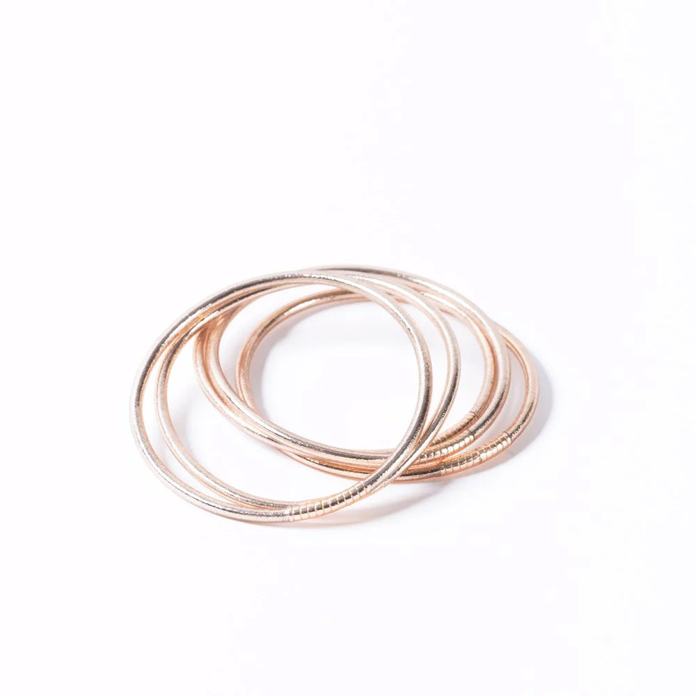 Available in Thin, Thick, Twisted or Braided, in Silver, Champagne or Gold, they look effortlessly chic and beautifully boho stacked and layered together. (Each sold separately).