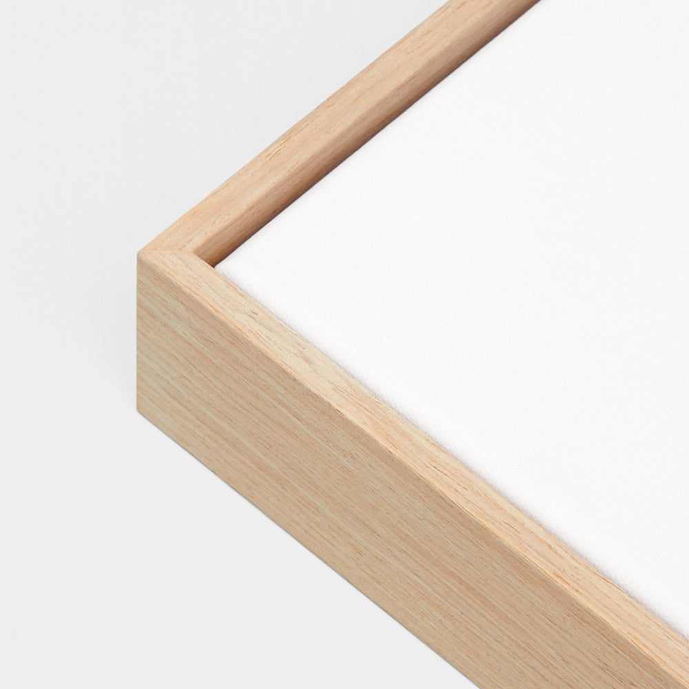 Stretched cotton blend canvas, Premium Light Timber Veneer frame, pine stretcher backing frame.