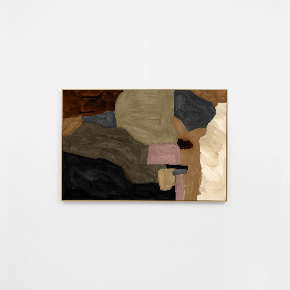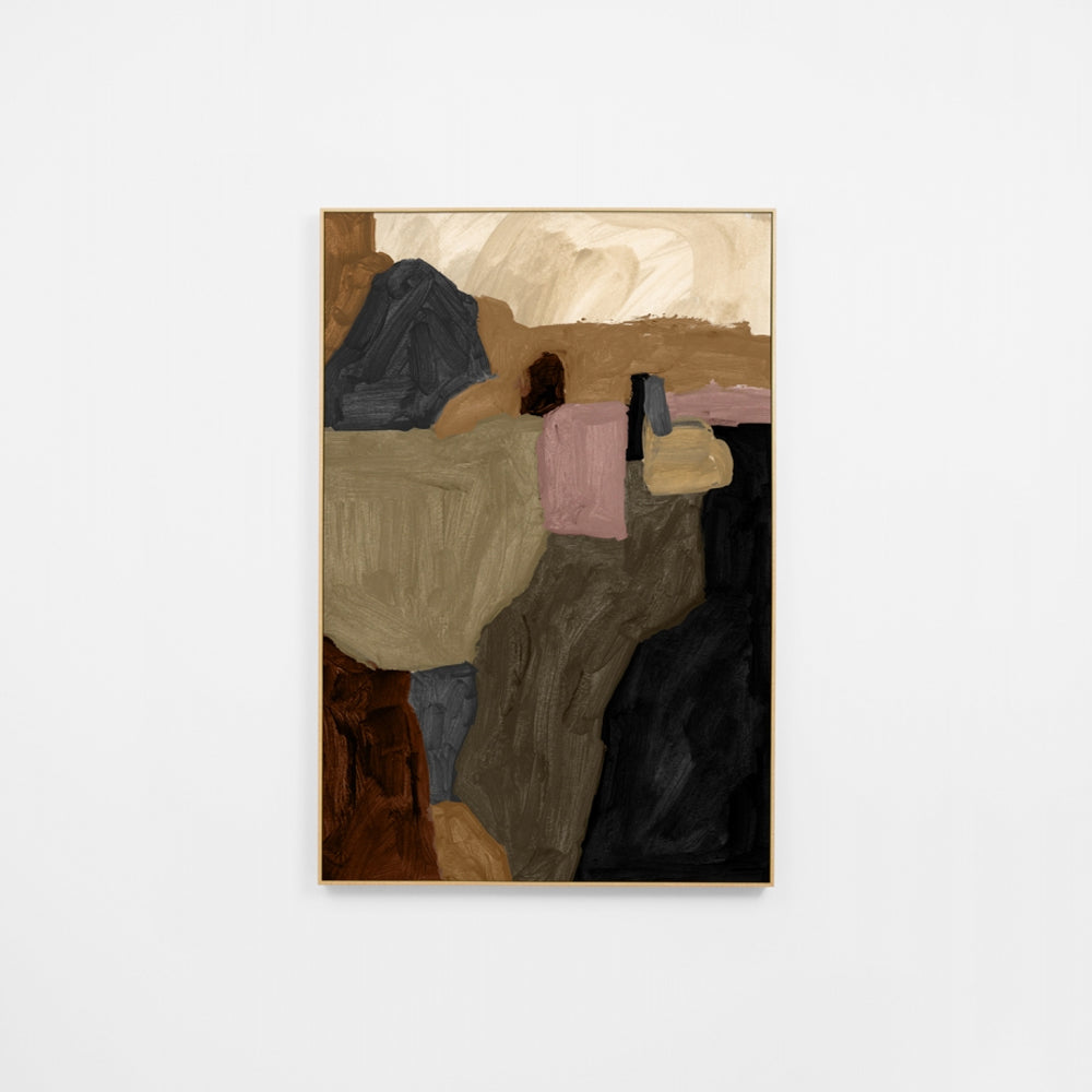 This modern abstract design is moody and bold, sure to add depth to any space. Maeve Earth 1 is ready to hang, and can be displayed both in landscape or portrait orientation.