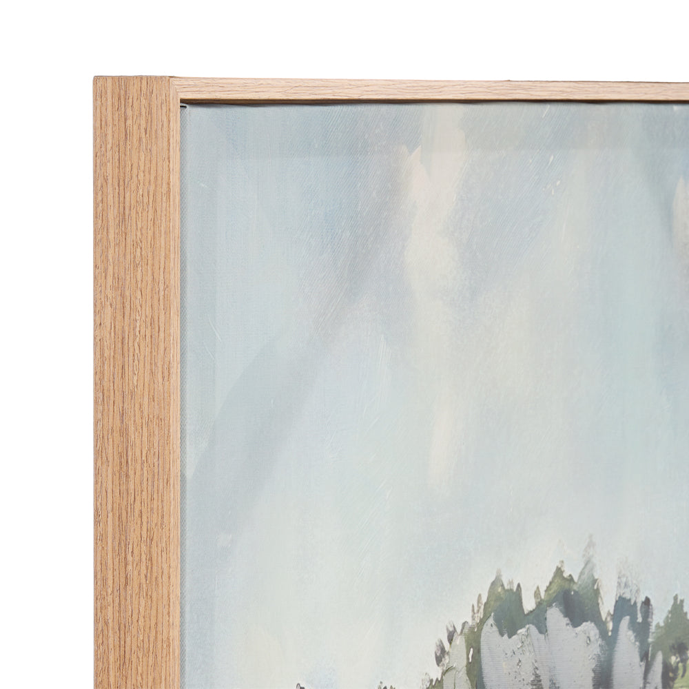 Each canvas features unique hand-painted brush strokes adding texture to the print, and is encased in a plastic timber-look frame.