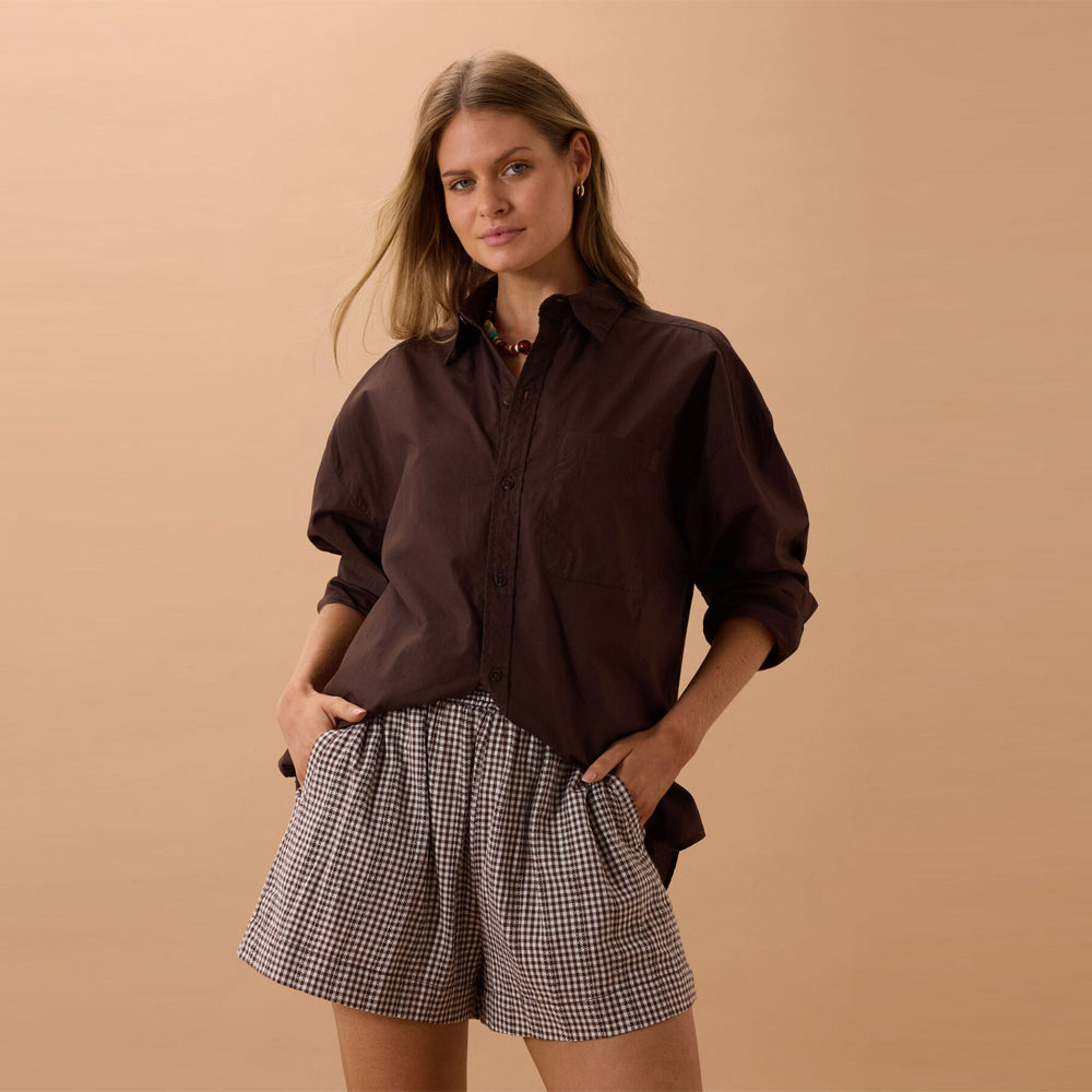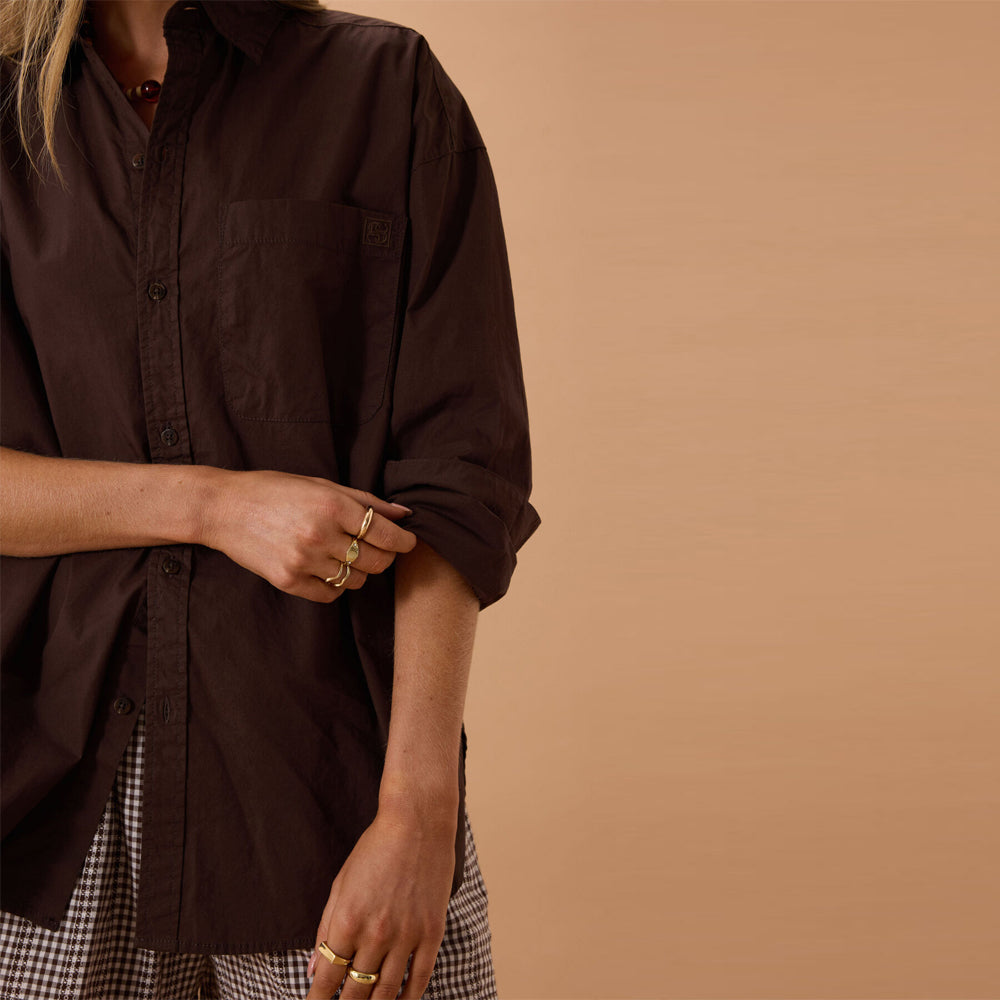 The team favourite, the Peta Oversized Poplin Shirt (Ceres Life) is intentionally designed in a relaxed fit with a drop shoulder and oversized chest pocket. Crafted from a light weight, cool on the skin, 100% organic cotton finished with considered details including knife pleats at cuff, forward shoulder seams and mid-weight top stitching throughout. Effortlessly pair with your favourite wide leg denim for an everyday look. You'll have this piece on high rotation year round.