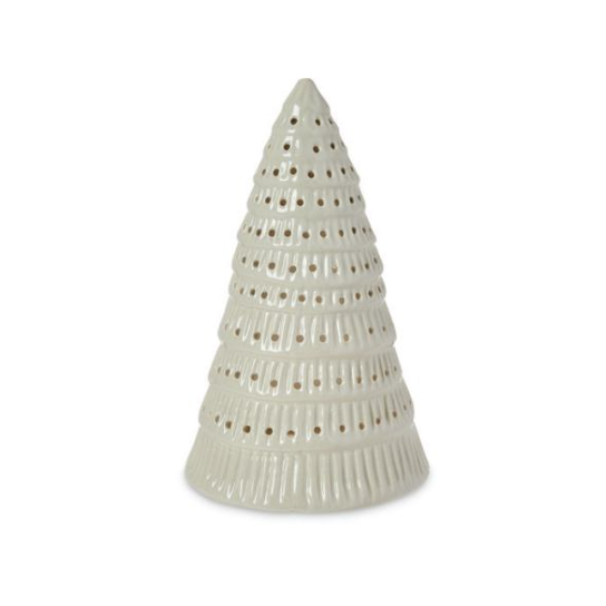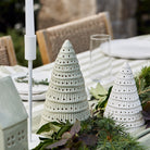 This classic porcelain Christmas Tree table decoration features a soft sage speckle glaze in a gloss finish, ribbed tiered design and small holes to replicate tree lights or baulbles.
