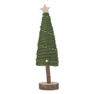 Perfect for your Christmas table setting or decoration around the home, this sweet little Tree features a timber stump base, ribbed green fabric wrapped in a golf beaded garland, topped with a plywood star.