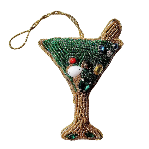 Beaded, boozy, Christmas bling. Turn your tree into a cocktail party, or attach this decoration to presents or place settings as fun party favours. Cheers!