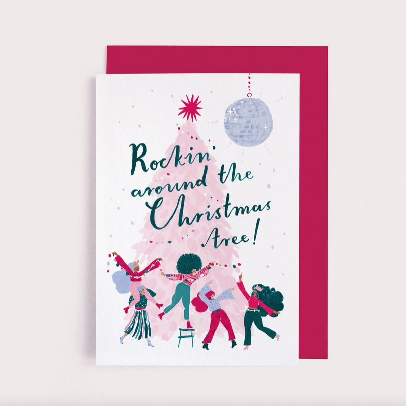 Rockin' around the Christmas tree has never looked so good. Featuring women dancing under a disco ball, decorating a pink tree. Pure joy.