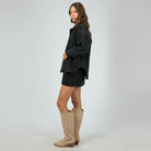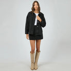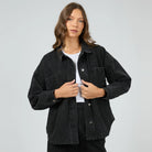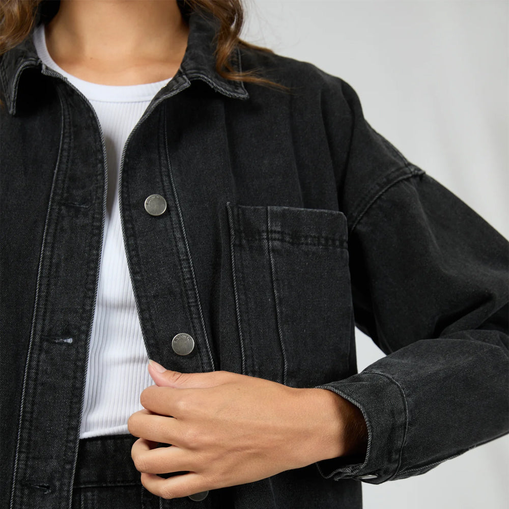 The Dale Shacket (All About Eve Clothing) is just the piece to complete any outfit. Crafted from cotton rigid denim, featuring a long fit and front chest pockets.