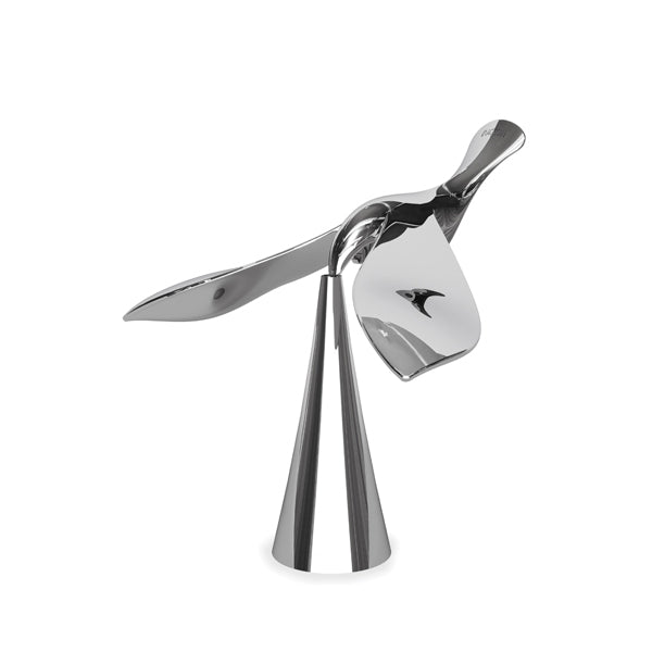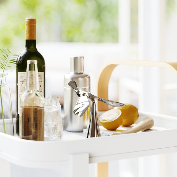A unique conversation starter, this sculptural bottle opener balances on its own stand (included) or on any edge surface. Tipsy is made of cast metal with a polished chrome finish, ensuring a high-quality interactive bar accessory that will last.