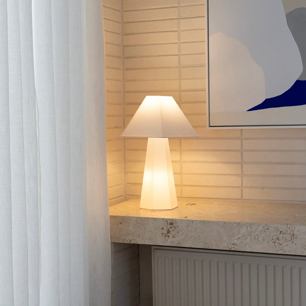 Introducing the Blake Table Lamp, a chic new addition to our Paola + Joy range that boasts a hexagonal base and shade, both adorned in textured linen, creating a stunning blend of modern aesthetics and ambient lighting.