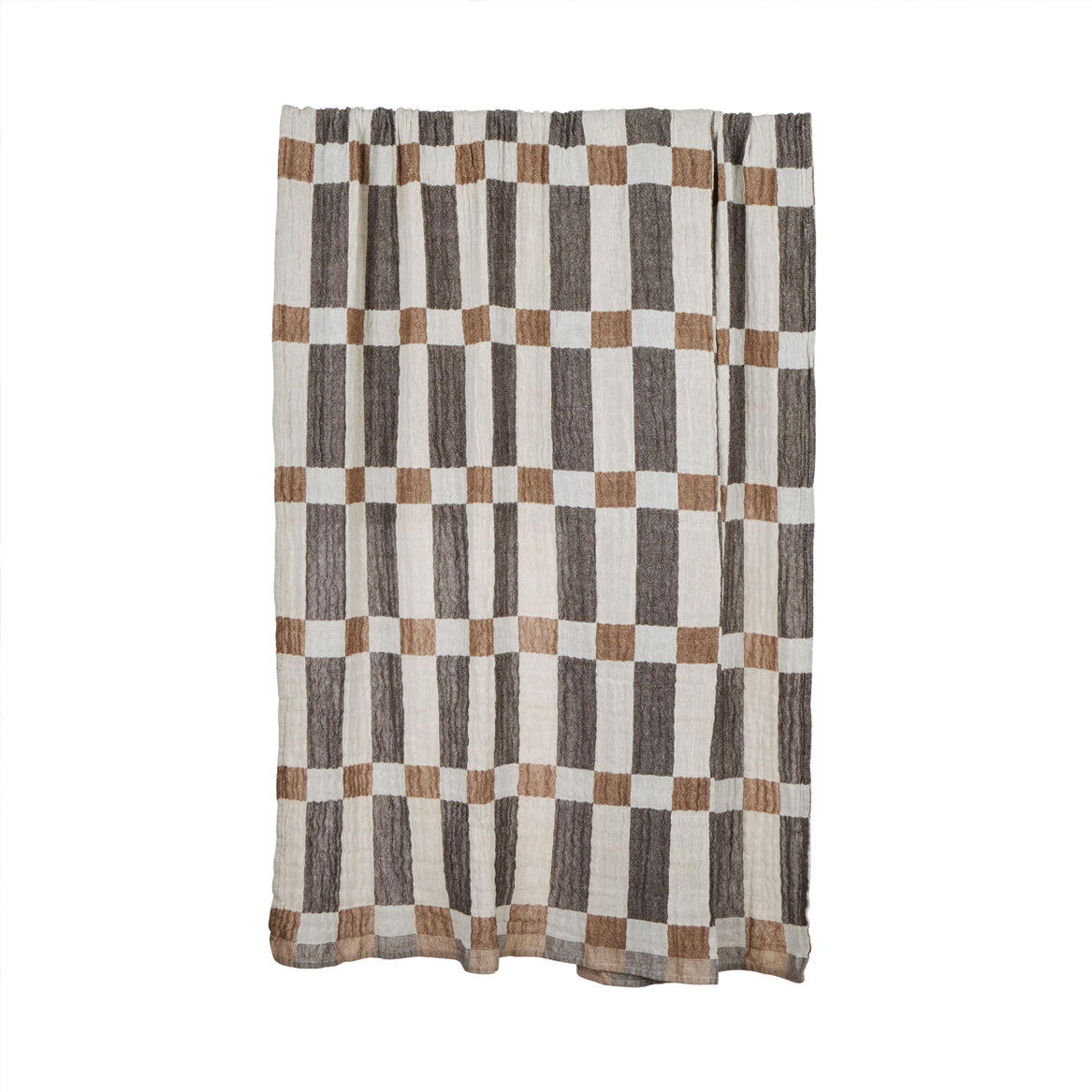 In a loving nod to the 70's, the Arlow Muslin Throw features a geometric design in rust, deep taupe and white.