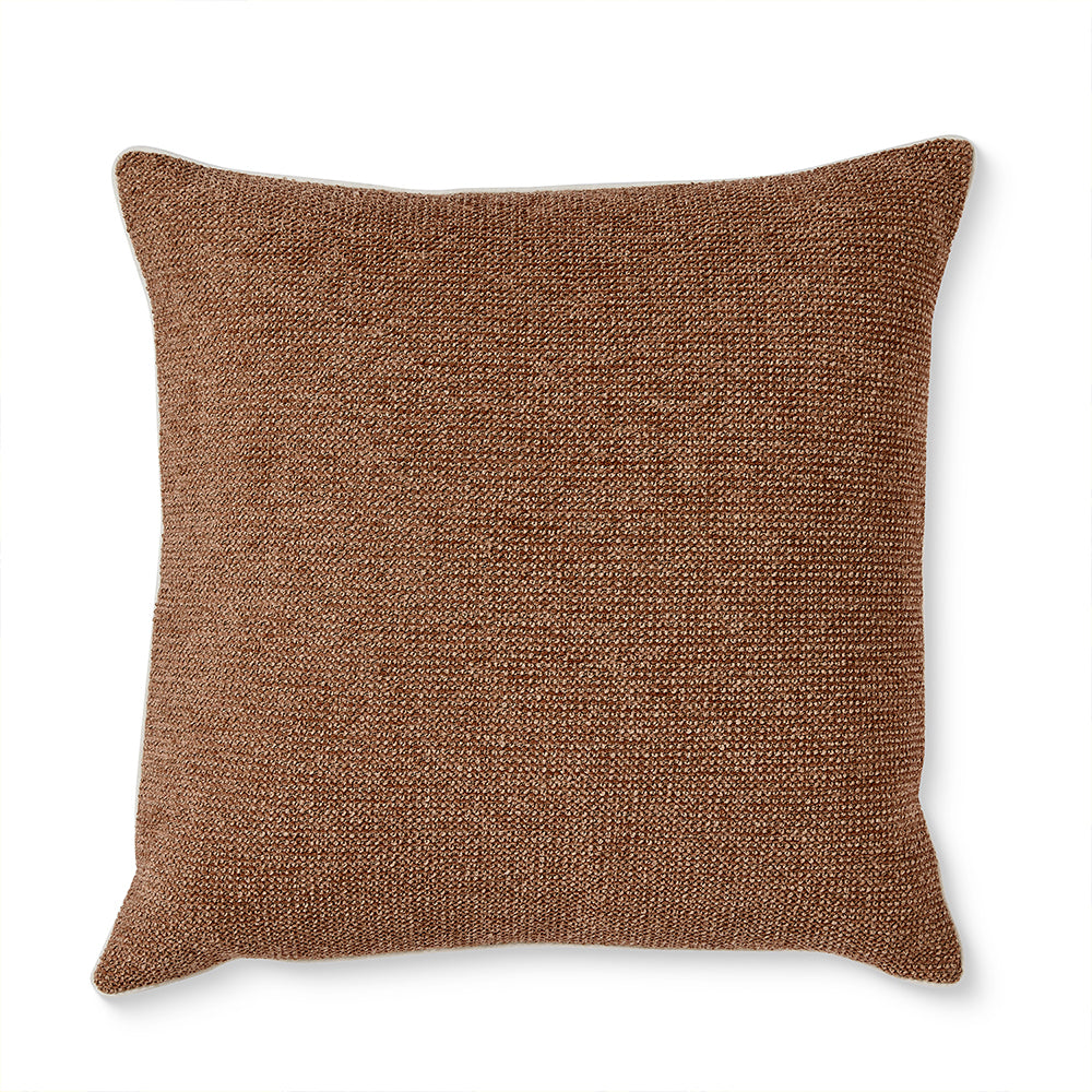 The classic square Casey Cushion features a woven texture showcasing beautiful variations of Clay tones, paired with contrasting crisp white piping along the edge. Earthy and warm, it's inviting and interesting, effortlessly complementing various interior styles.
