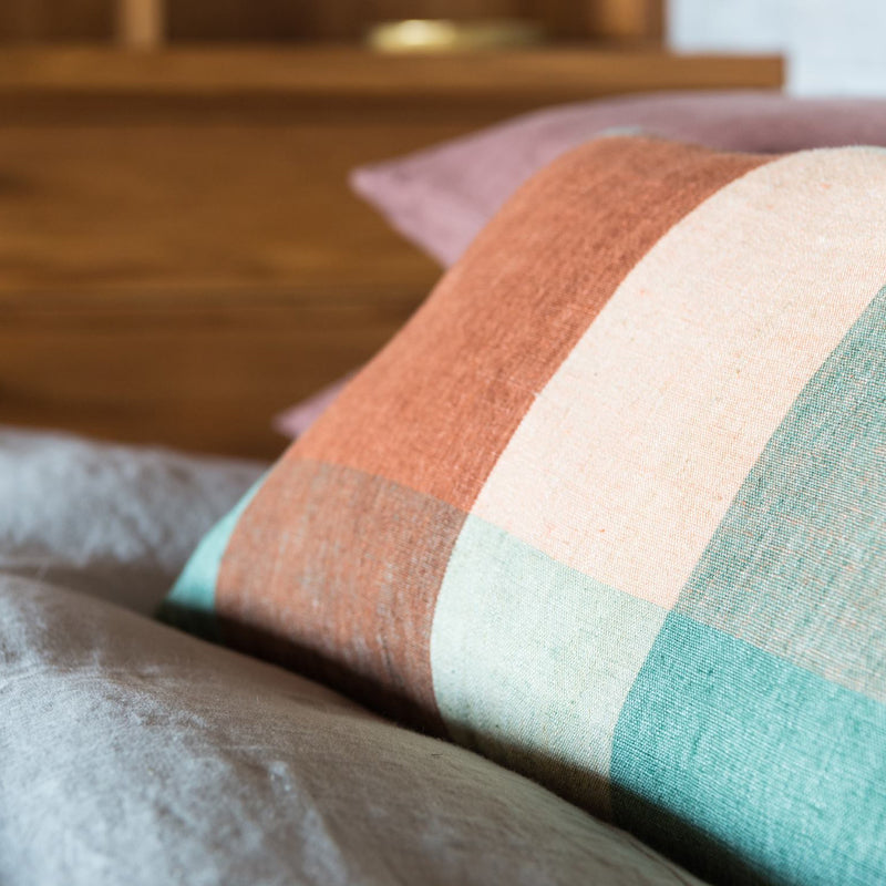 The Clyde Handwoven Linen Cushion Cover takes inspiration from textiles found in quintessential New Zealand baches and cabins. The cover combines bright tones with pretty pastels to create a playful, unexpected colour palette.
