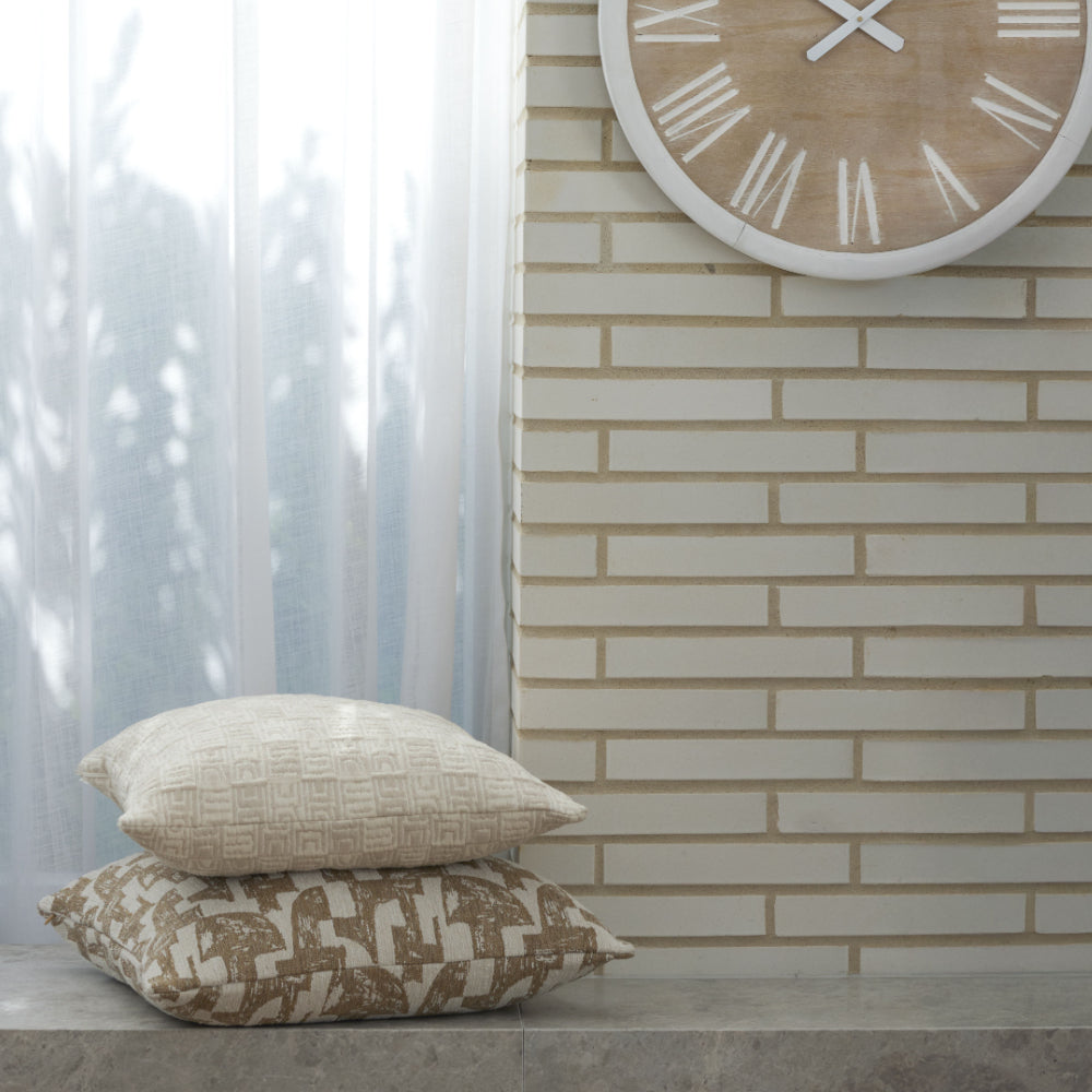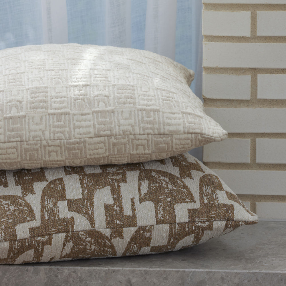 Plump and textured, the Dune Cushion boasts a '70s inspired geometric design in a soft linen blend. An ideal piece to introduce pattern into your space, in a versatile colour palette of beige and golden browns.