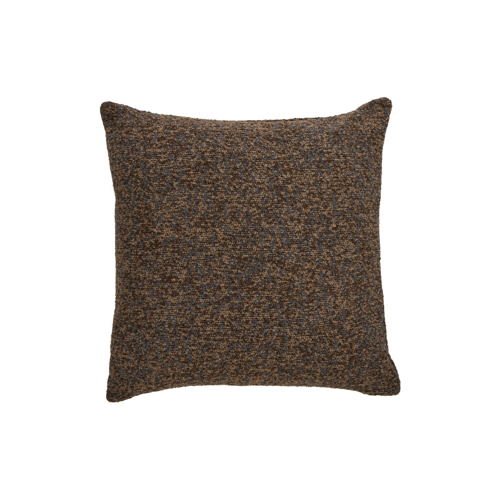 The Koba Boucle Cushion features a textured boucle cover in a rich dark brown, with flecks of lighter brown and navy.