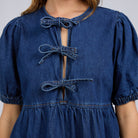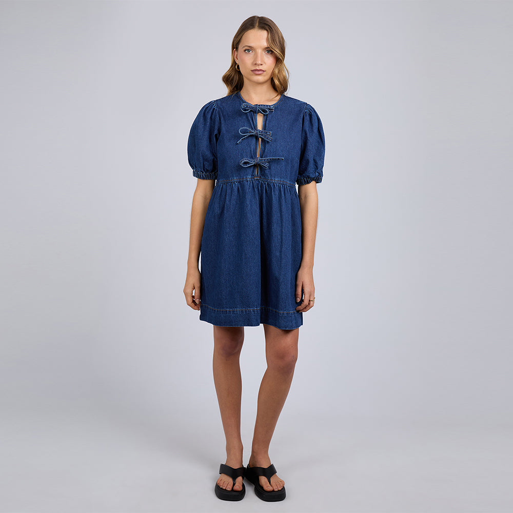 The Amalie Mini Dress (Silent Theory Clothing) will make an easy addition to any wardrobe this spring summer season. Made from a cotton rigid denim, this mini features a gorgeous wash, tie front and relaxed body. Style back with your favourite sandals and beach bag for the ultimate beach to bar mini.