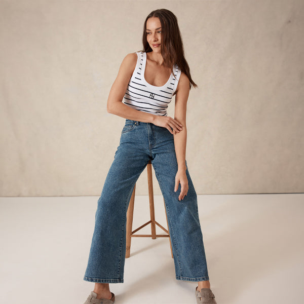 The Evie wide leg jean (Ceres Life) is a modern take on a denim classic & is bound to be a wardrobe favourite. Designed to flatter, this waist hugging style skims over your hips whilst the wide leg elongates your silhouette and elevates your everyday look.