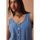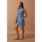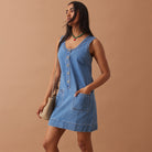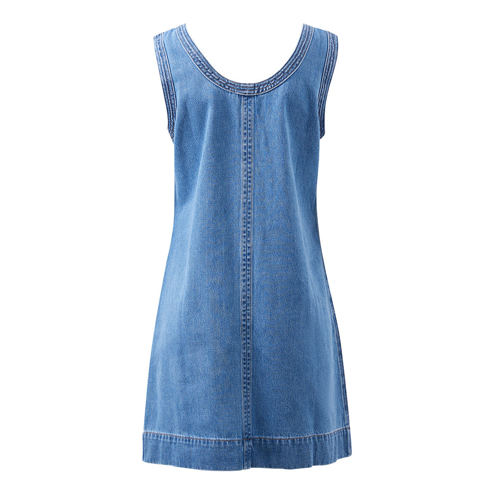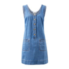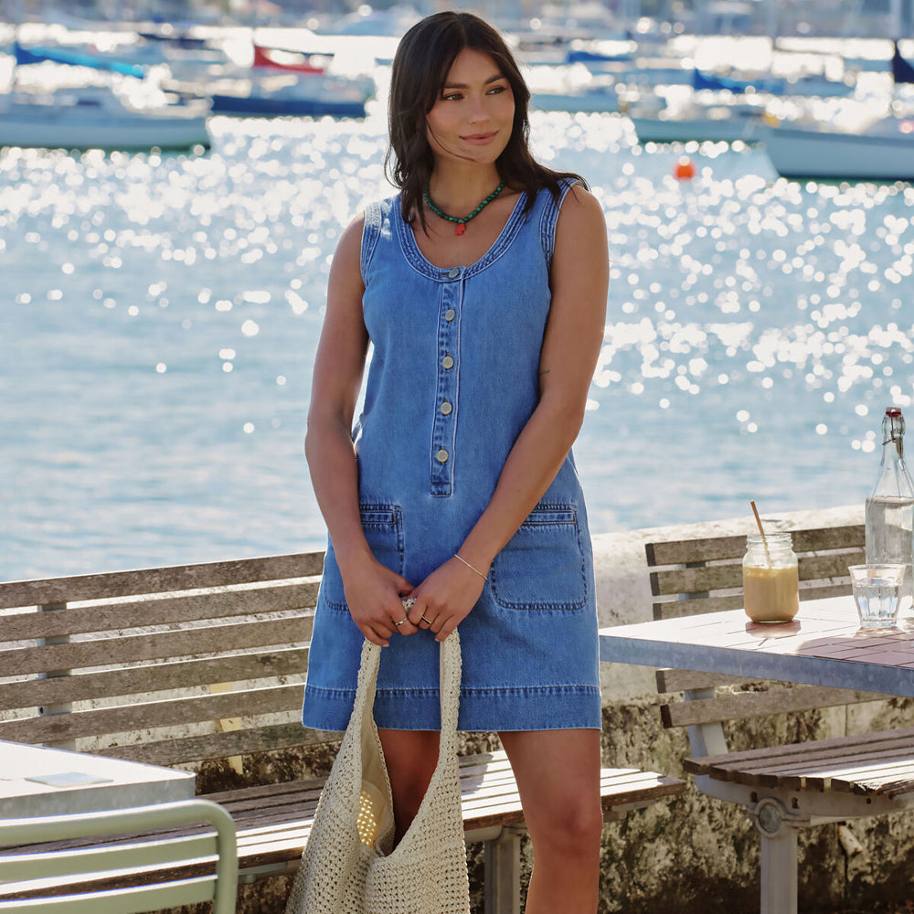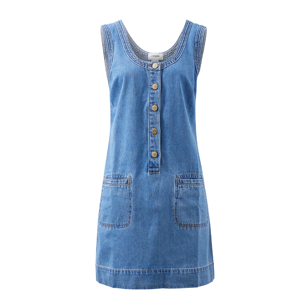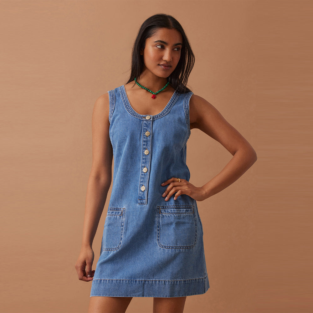 Introducing the Sunny Denim Tank Dress (Ceres Life). Made from mid-weight rigid denim with a soft touch, this mini dress is crafted with 100% organic cotton. Designed for everyday ease, the functional button placket, dart detail, and elevated triple stitch accents add style, it’s a wardrobe must-have for all summer long.