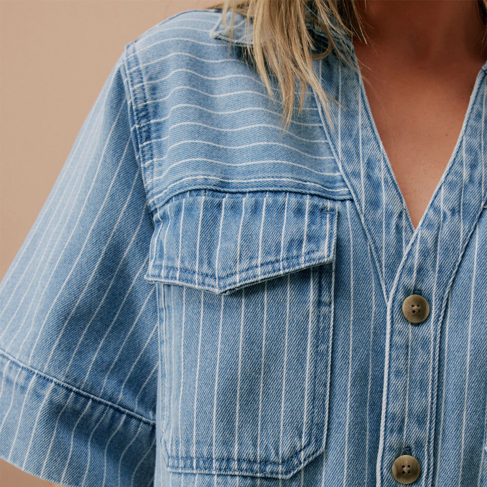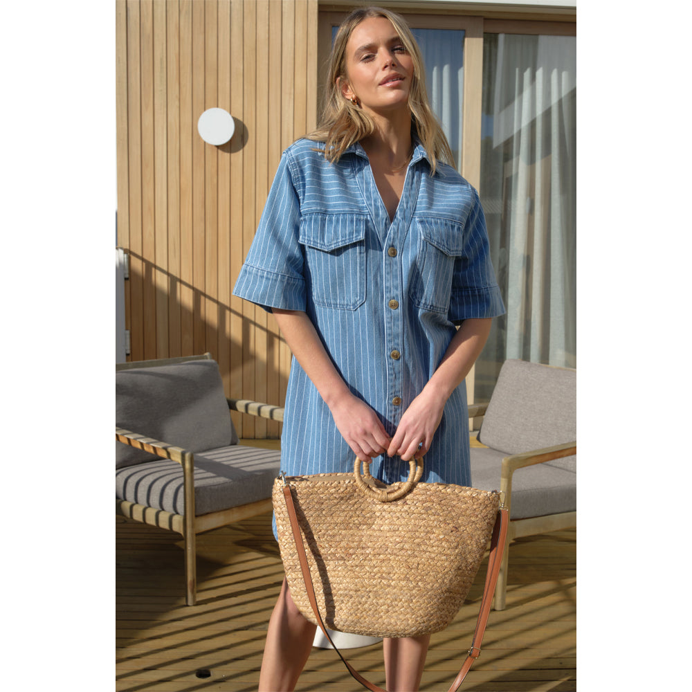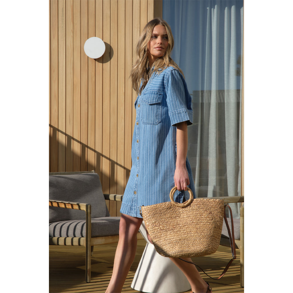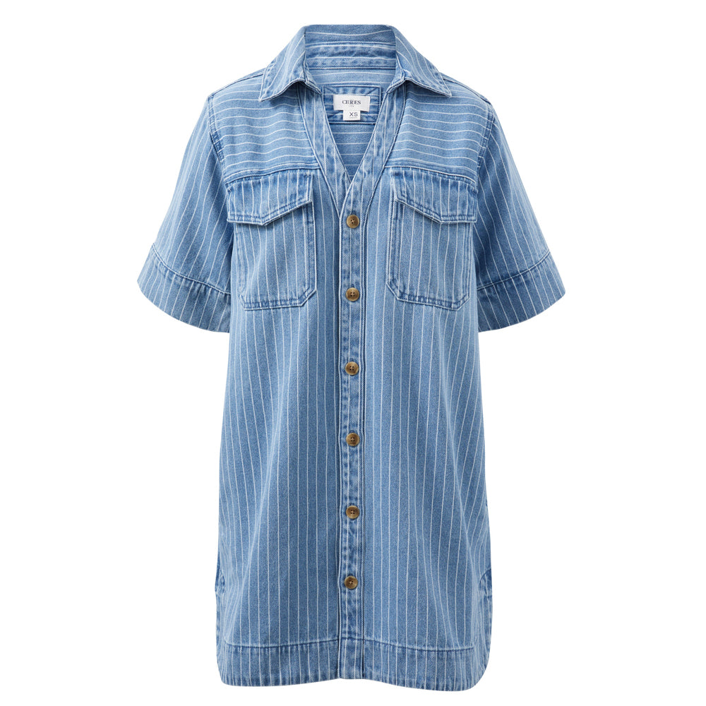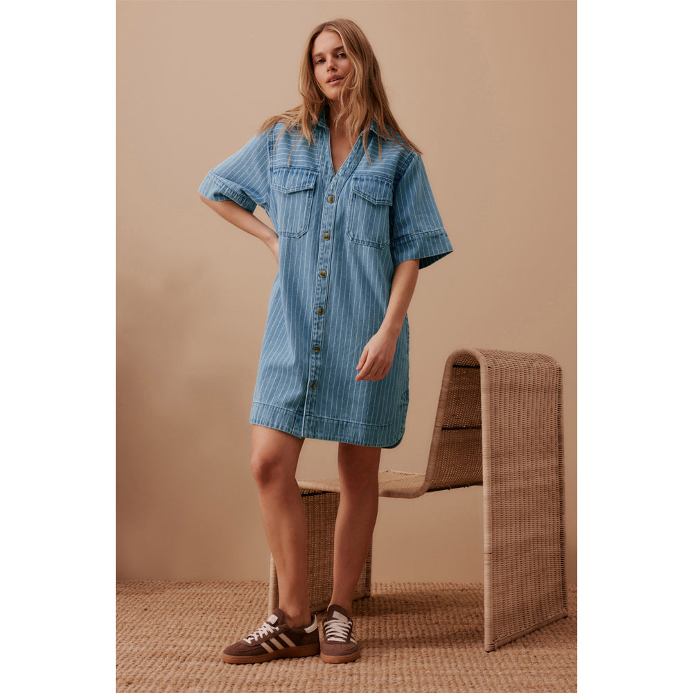 Sammy Relaxed Shirt Dress - Indigo Stripe