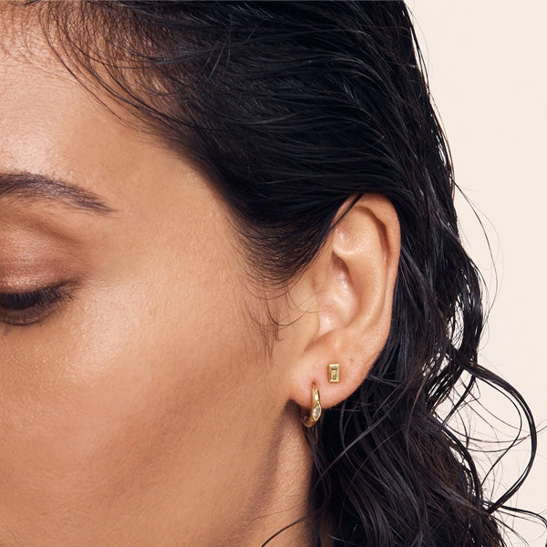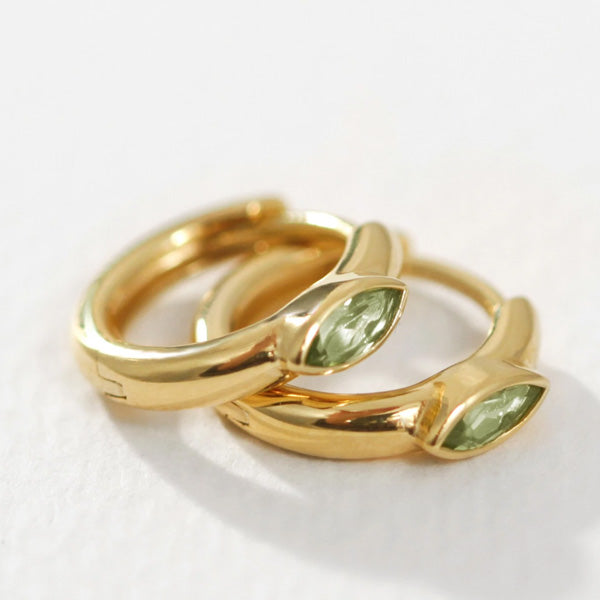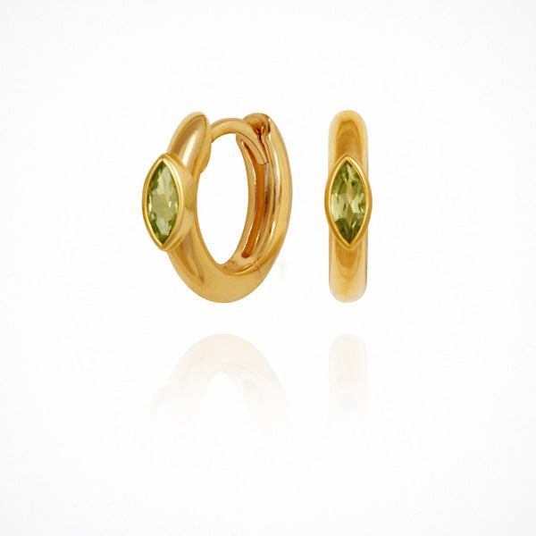 The Chrysalis Earrings in 18K Gold Vermeil are a classic gold hoop with Eye motif in Peridot. The Eye symbol represents wisdom and protection, while Peridot embodies the sun's positive energy and is often used for new beginnings. Chrysalis is a symbol of protection during periods of transition and growth, the Peridot stone brings feelings of positivity and supports us in our new beginnings.