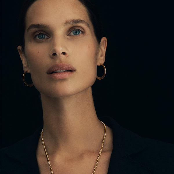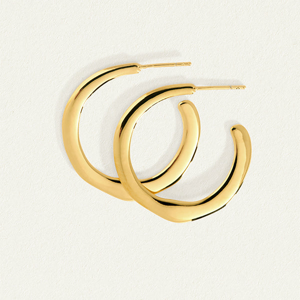 The embodiment of potent femininity, these mid-sized hoop earrings are crafted from 18k gold vermeil. Their highly polished surface highlights the raw power of their undulating, nature-inspired form.