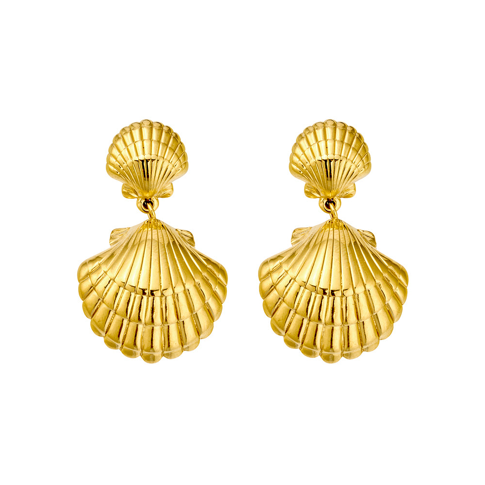 Dramatic and playful, these drop earrings feature a stud-backed sea shell, linked to a larger shell, allowing movement and shine.