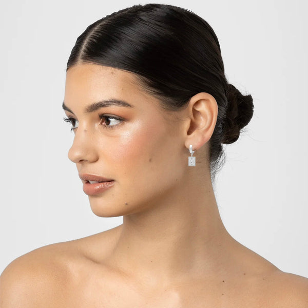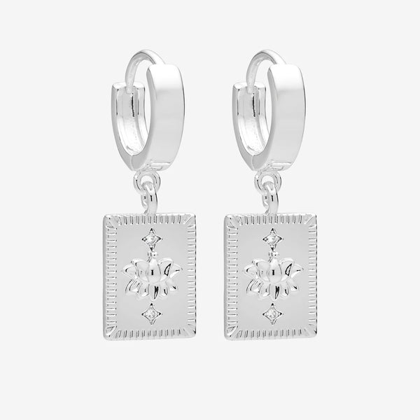 The Hari Silver Earring feature a lotus motif on a rectangular drop pendant. A luxe heirloom style that will stay with you on your journey.