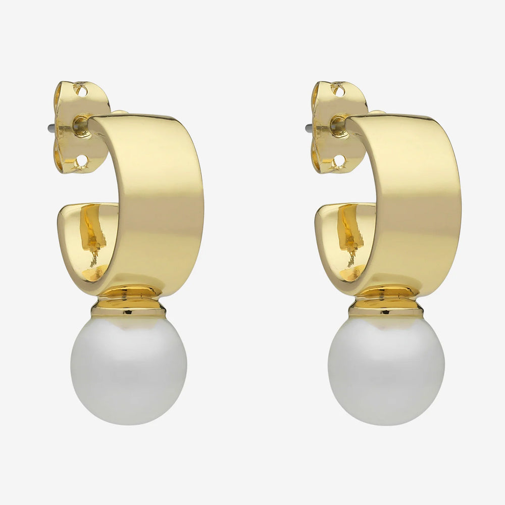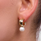 Hayley is a classic mini hoop with drop pearl. An everyday icon.