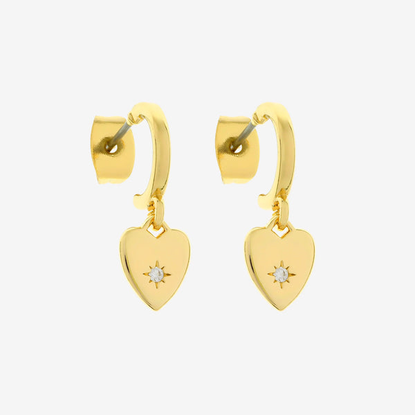 This cute little heart style will make the perfect gift. The Hestia Gold Huggie is off set by a tiny clear centre crystal.