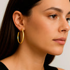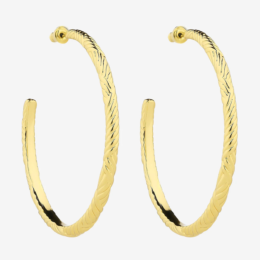 The Indira is a large, open hoop statement earring, featuring fine etching detail for a beautifully textured look.