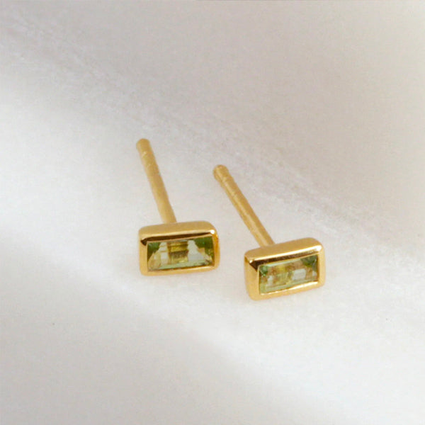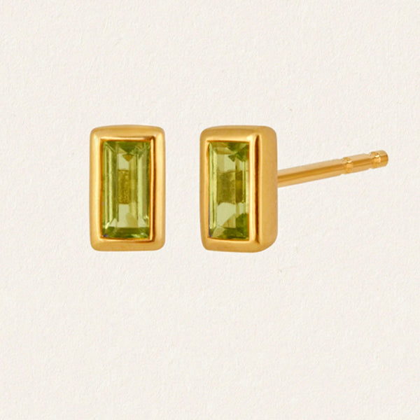 The Leda Studs in Peridot with 18K Gold Vermeil are a modern interpretation of the classic stud earring. Peridot embodies the sun's positive energy and brings wellbeing. Meaning 'happy' in Greek, Leda is also Helen of Troy's Mother, known for her great beauty.