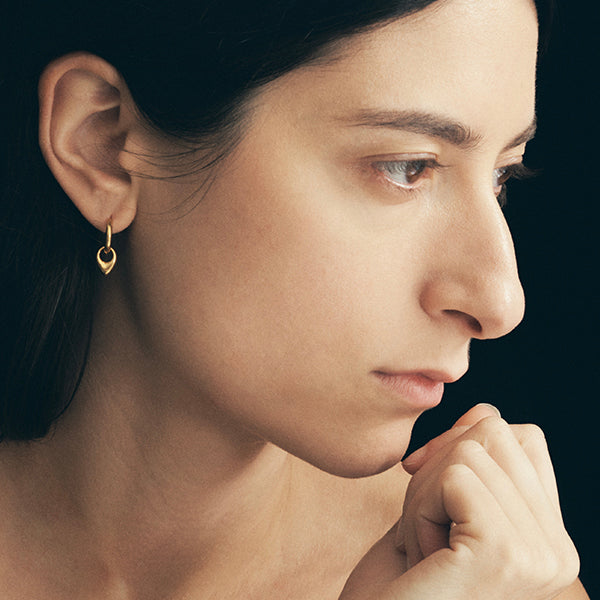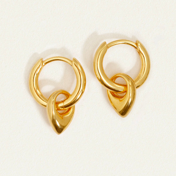 The Sanna Earrings are polished, 18k gold vermeil huggies inspired by lotus petals.